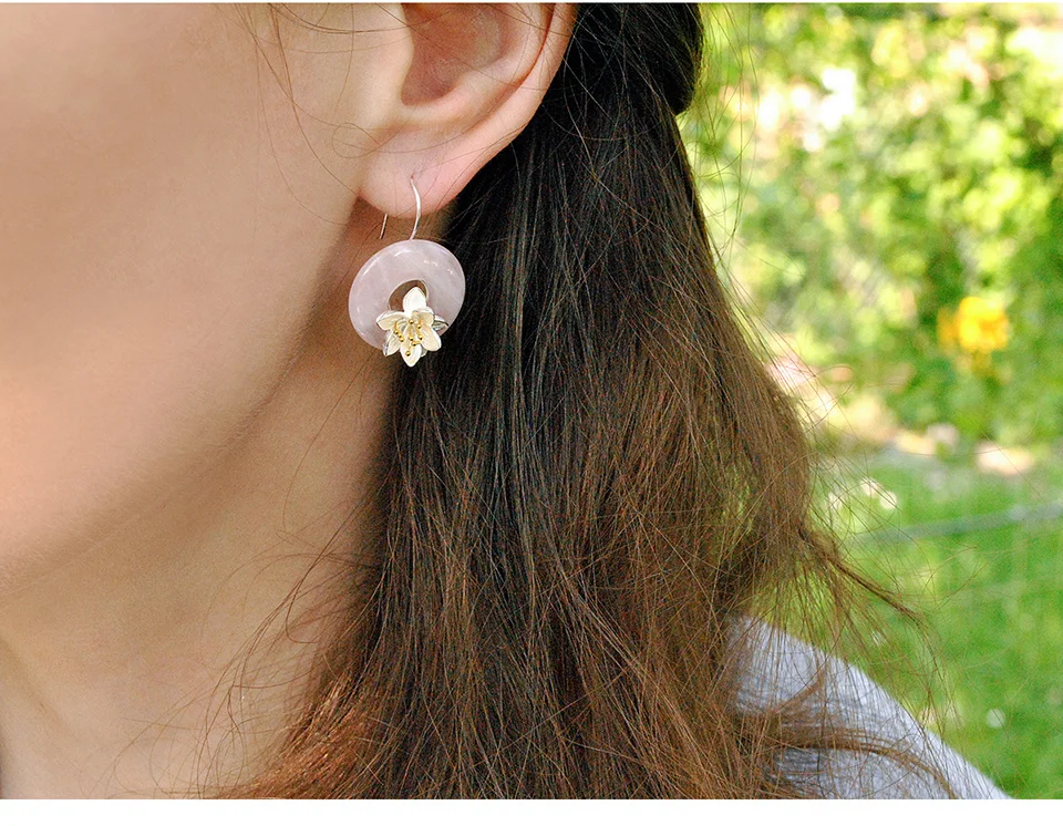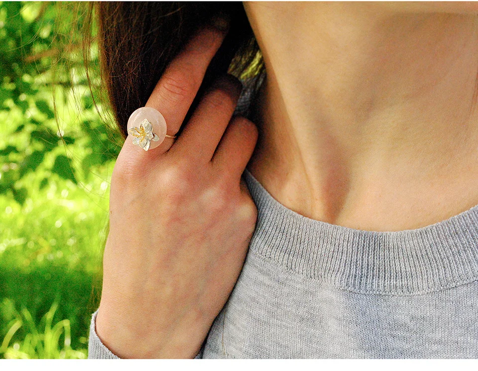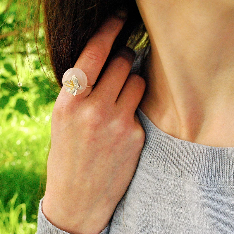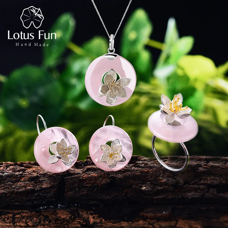 Lotus Fun реальные 925 серебро ручной работы Ювелирные украшения лотоса шепчет комплект ювелирных изделий с кольцом кулон Цепочки и ожерелья серьги