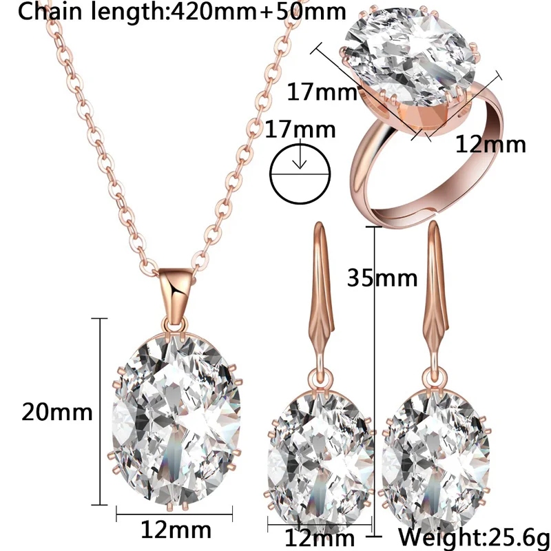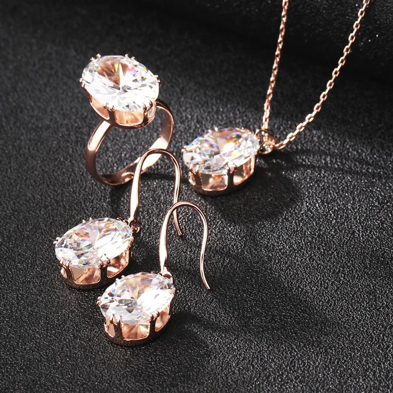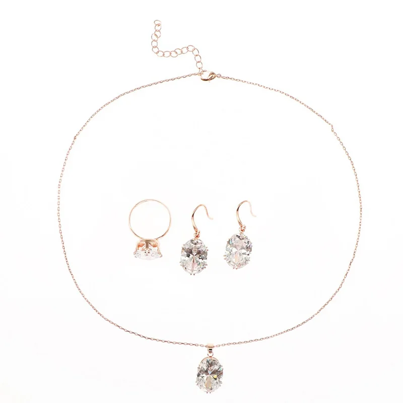 Набор женских ювелирных изделий из розового золота, с фианитами, с кольцом, 2021