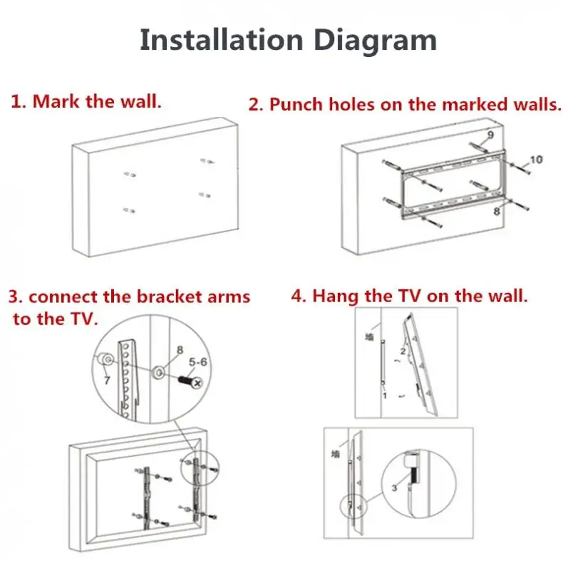 Универсальный кронштейн для телевизора, настенное крепление 25 кг35 кг50 кг, фиксированная рамка для телевизора с плоским экраном 12 - 37 26 - 60 дюймов, ЖК светодиодный монитор с плоским экраном