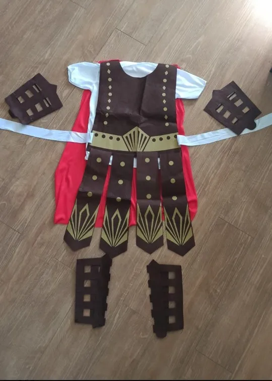 Костюм неплохой. Но это не похоже на описание. Футболка до колен и на талии. Защита голени и защита запястья на фотографиях выглядят так же, как на самом деле. Костюм большой и маленькая футболка. На фотографиях, которые вы видите.