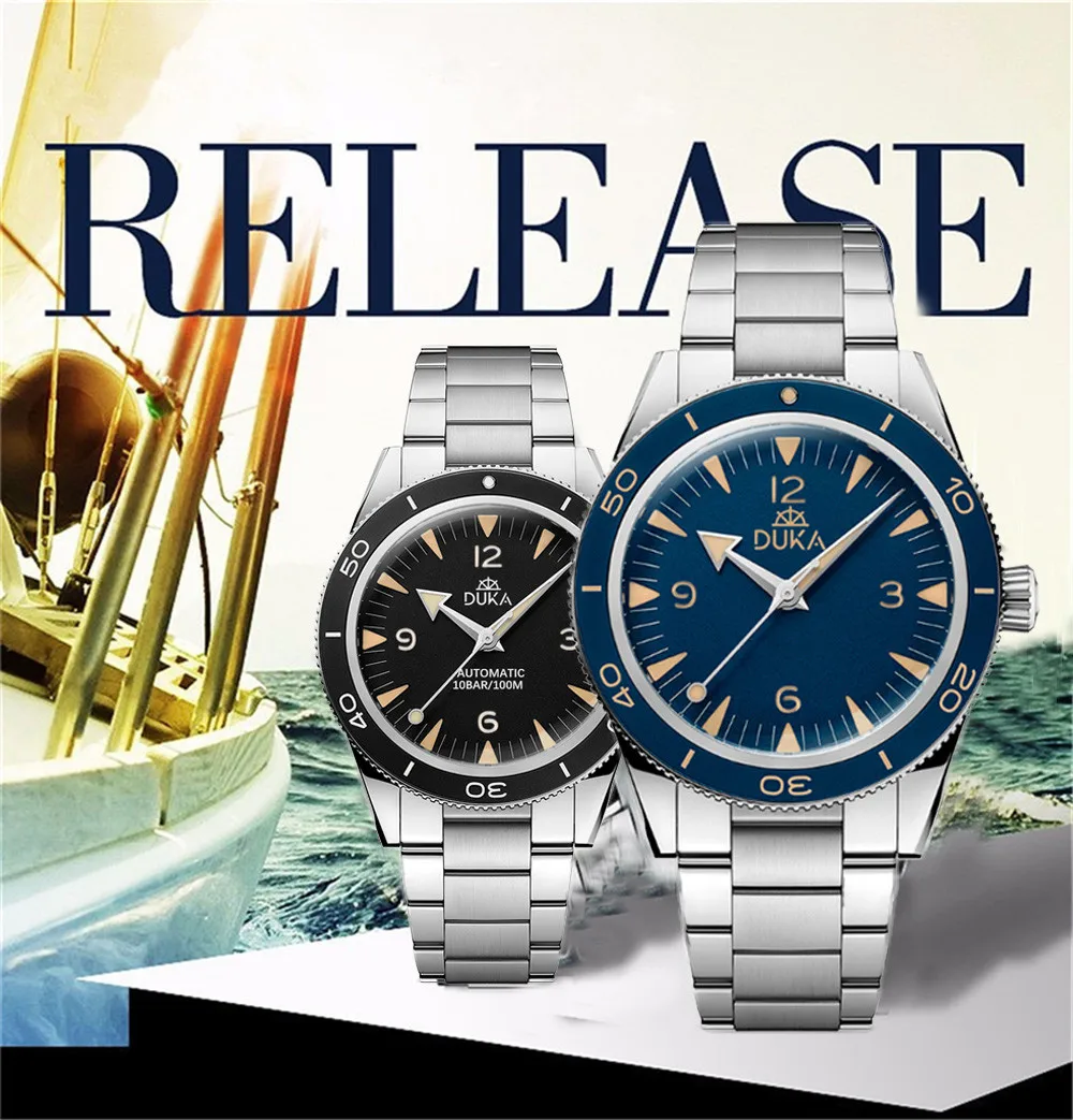Мужские автоматические механические часы DUKA, Классические деловые спортивные часы в стиле ретро, водонепроницаемость 2021 м, 41 мм, 200