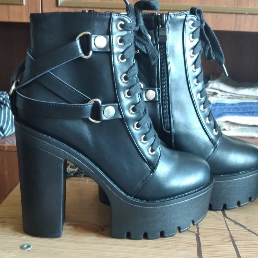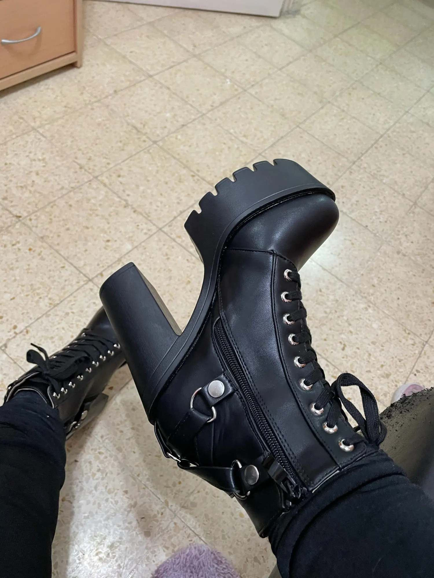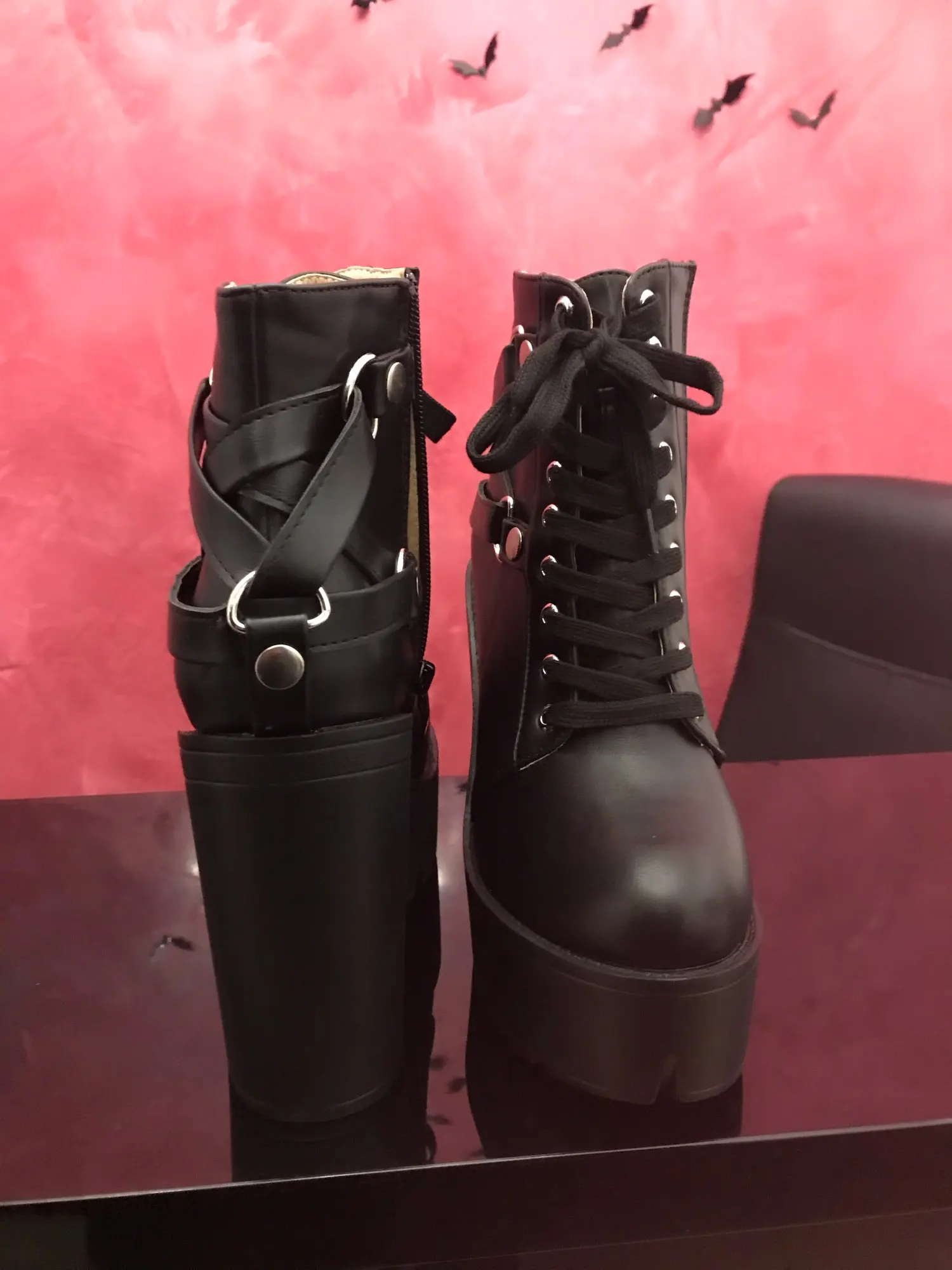 Gdgydhмодные черные ботинки; Женская обувь на каблуке; Сезон весна-осень; Обувь на платформе со шнуровкой из мягкой кожи; Женские вечерние ботильоны на высоком каблуке в стиле панк
