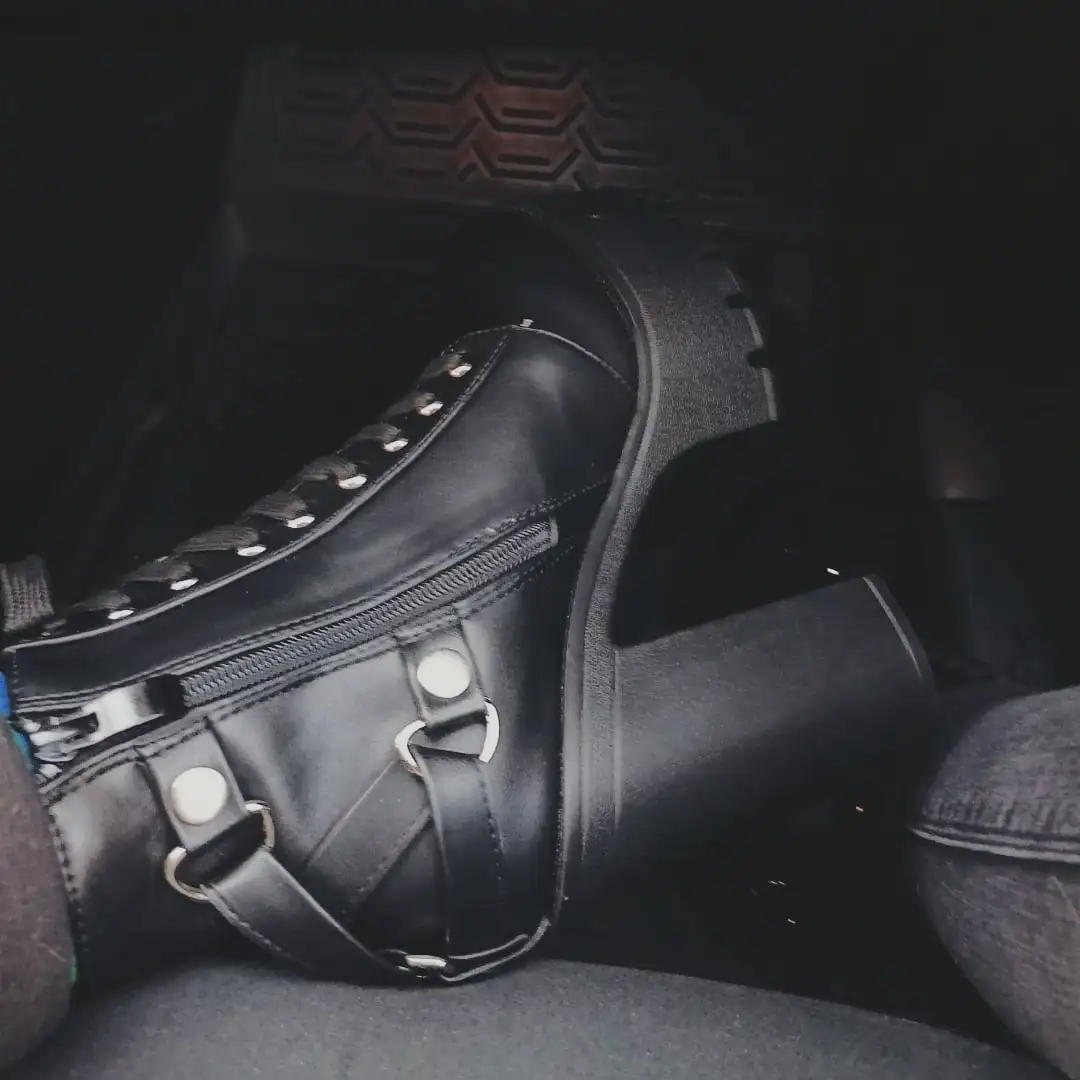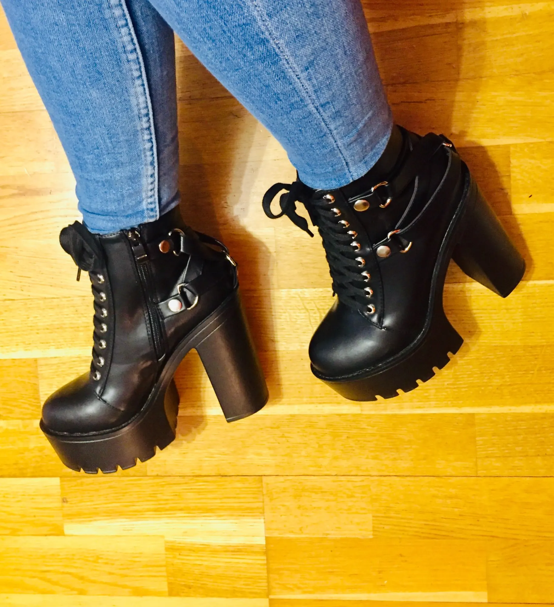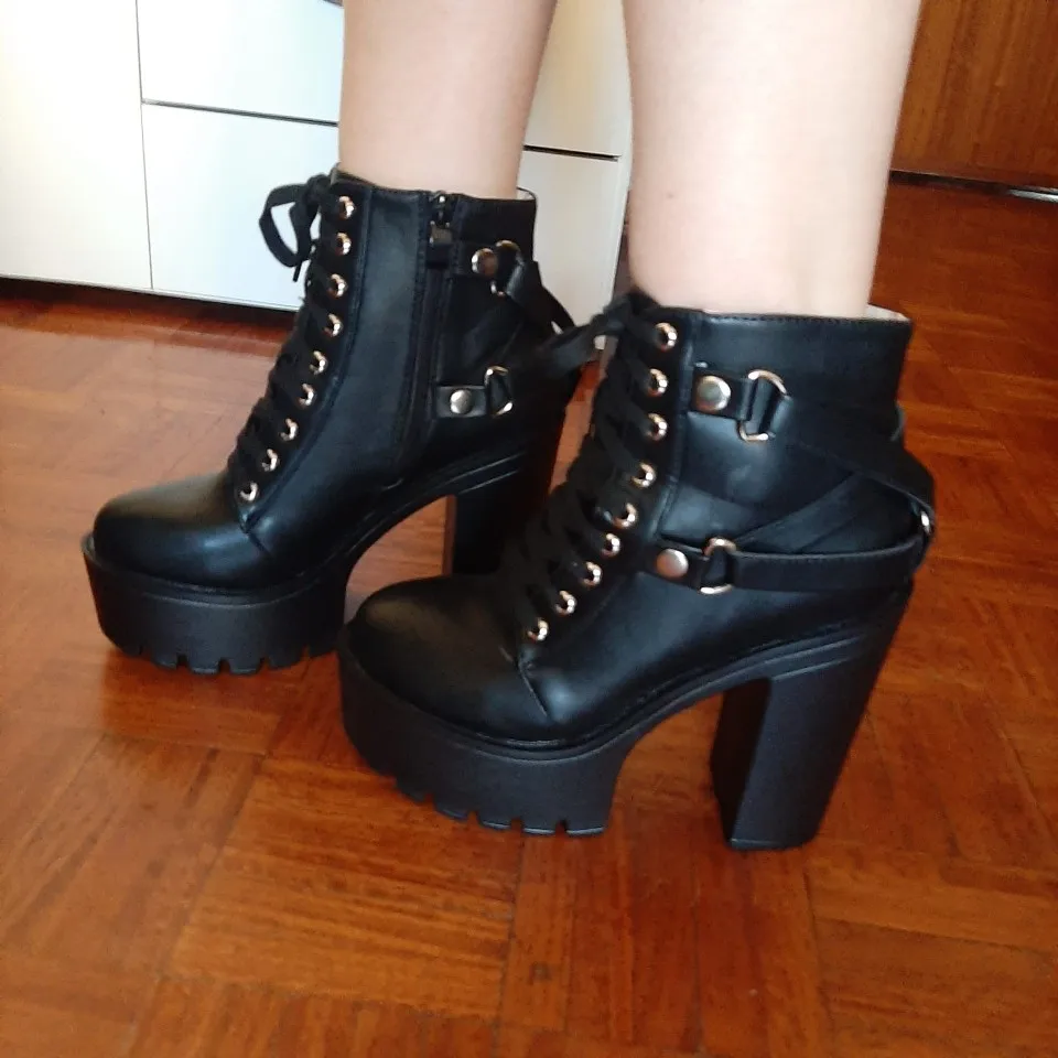 Gdgydhмодные черные ботинки; Женская обувь на каблуке; Сезон весна-осень; Обувь на платформе со шнуровкой из мягкой кожи; Женские вечерние ботильоны на высоком каблуке в стиле панк