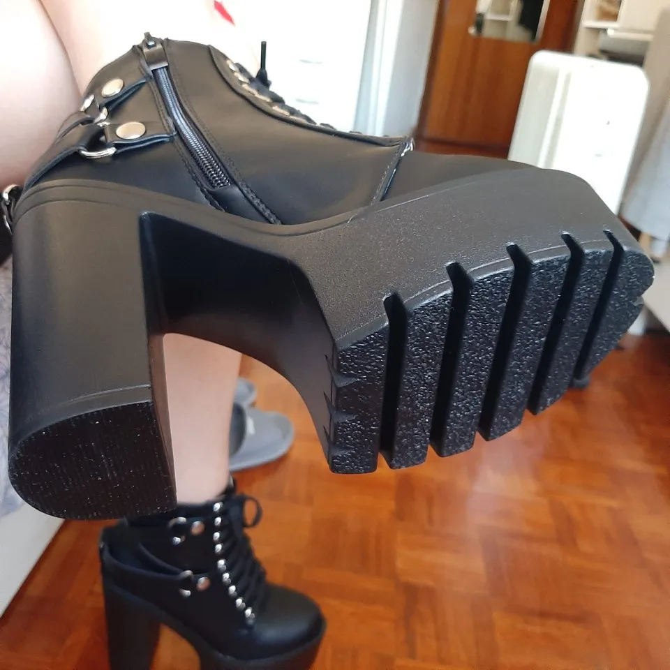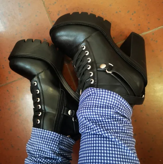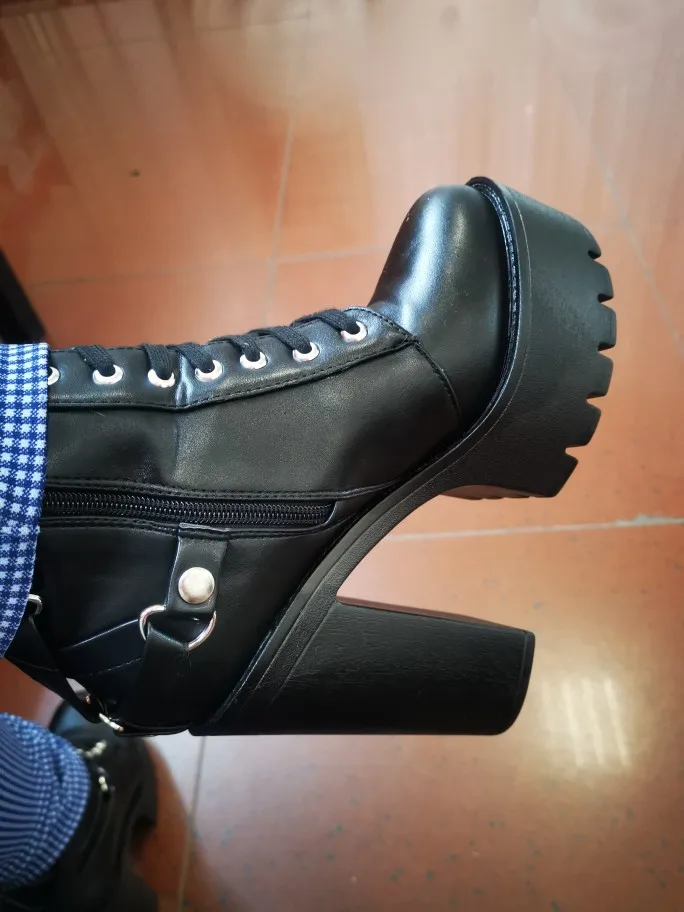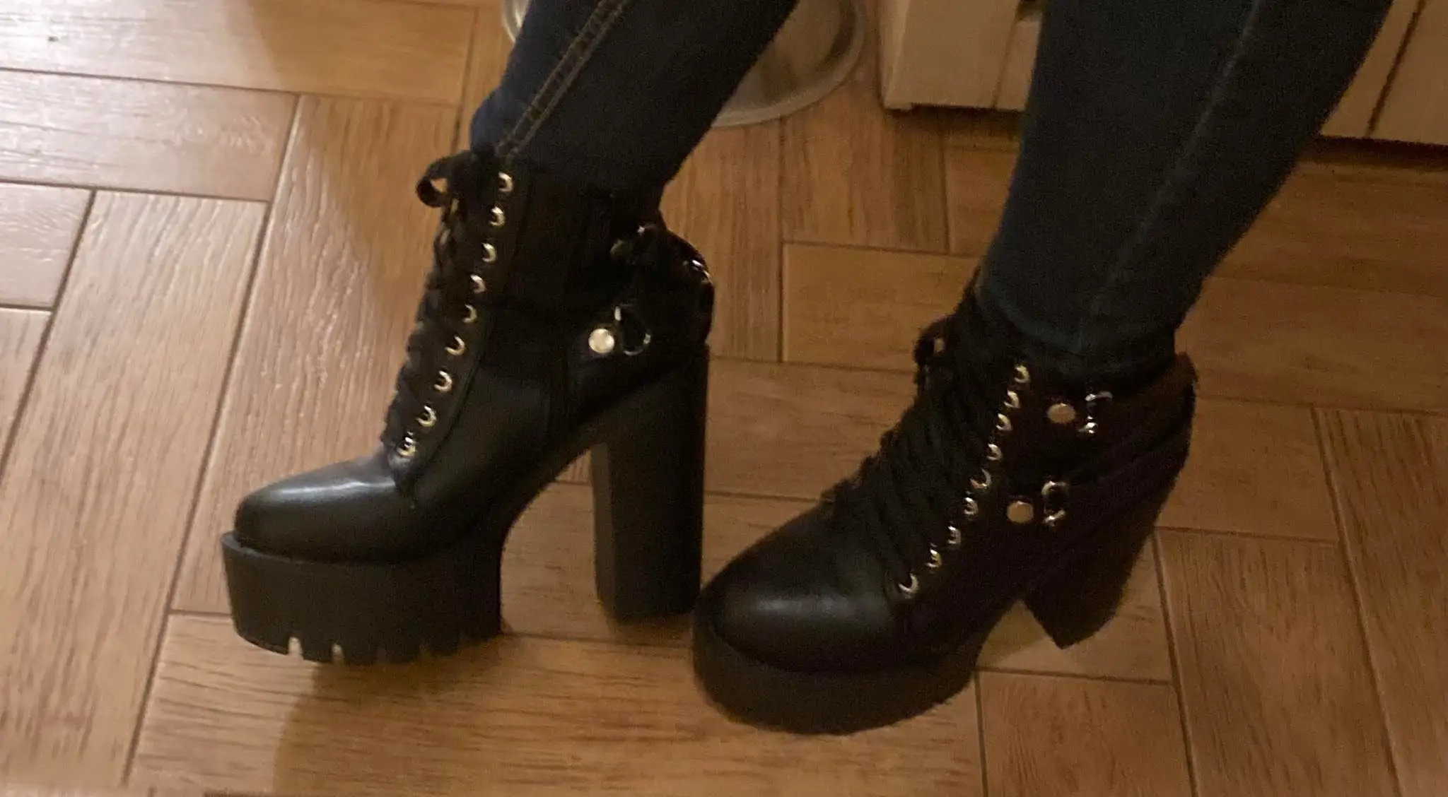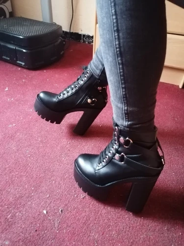 пришли очень быстро. Заказывала 8 размер на тонкую стопу 24,5см - на ботинках указан 39 размер. Но по размеру подошли, и регулируются шнуровкой. Сама обувь была упакована очень надёжно, приехала без повреждений. Швы везде аккуратные, клей нигде не торчит, никаких царапин и заломов. Качество потрясающее за такую цену. На ногах смотрятся массивно, но лёгкие. Каблук устойчивый. Высота обуви в основном за счёт платформы. Высота самого каблука не ощущается на изгибе стопы - и ходить вполне удобно.