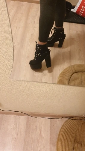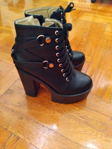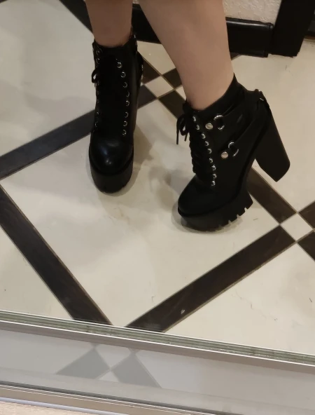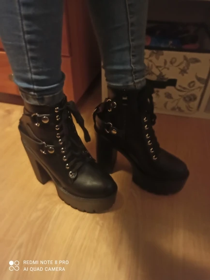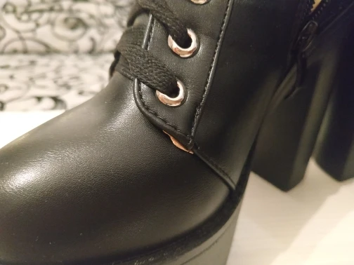 качество хорошее, клей нигде не нашла. на деле каблук кажется выше, чем на фотографии. пока не поняла, удобно ходить мне в них или нет, но внутри довольно мягкие. оказались свободными на мою ногу (обычно ношу 36, обувь с высоким каблуком - 35, стопа почти 23 см), но с доп. стелькой вроде бы хорошо :) скорее всего, по объему не совсем подошли, но это решается, так как сапожки на шнуровке