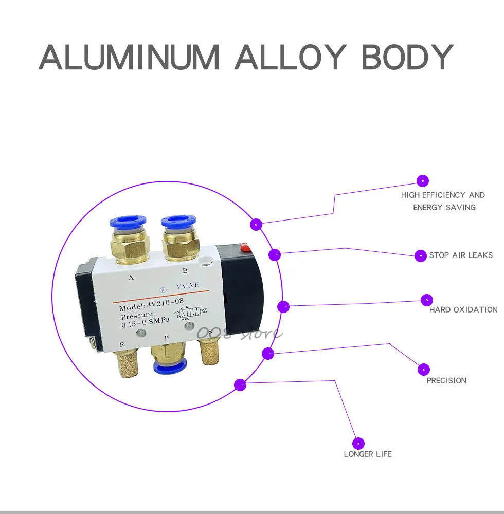 Бесплатная доставка, 14 дюйма, 2 позиции, 5 портов, AirTAC, воздушные СОЛЕНОИДНЫЕ клапаны 4V210-08, пневматический регулирующий клапан, 12 В, 24 В, 110 В, 220 В