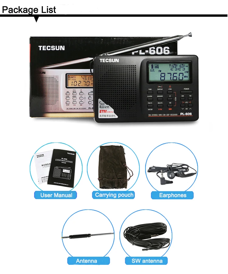Портативный цифровой FM-радиоприемник Tecsun PL-606 PLL, стерео, LWSWMW, приемник DSP, Интернет-радио FM:64-108 МГцLW: 153-513 кГц