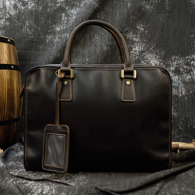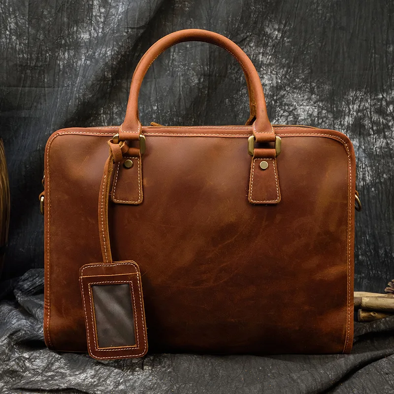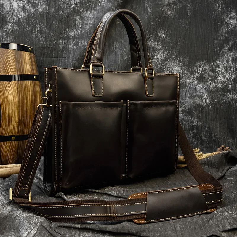 Мужской винтажный портфель из кожи crazy horse, подходит для ноутбу...