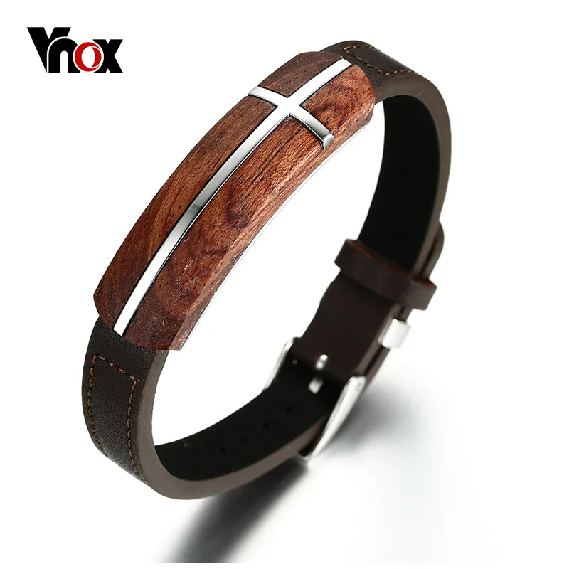 Vnox Ретро палисандр Для мужчин S браслет панк Пояса из натуральной кожи браслет для Для мужчин деревянный улица украшения браслет Homme регулируемый