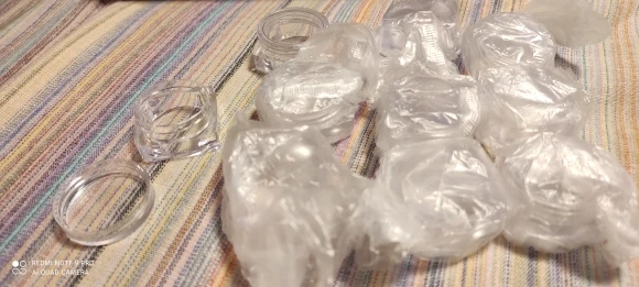 Очень хорошенькие маленькие баночки, просто прелесть. Реально очень маленькие и легкие, буду в путешествия класть в них по чуть-чуть крема и т.п. Высота 14 мм, диаметр 25 мм. Продавец положил с крышечками разных цветов. Спасибо!