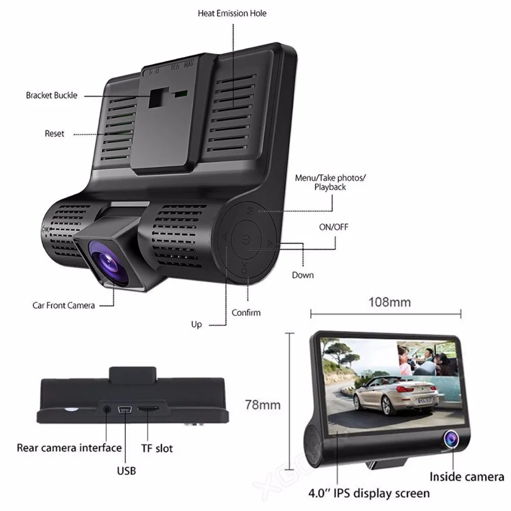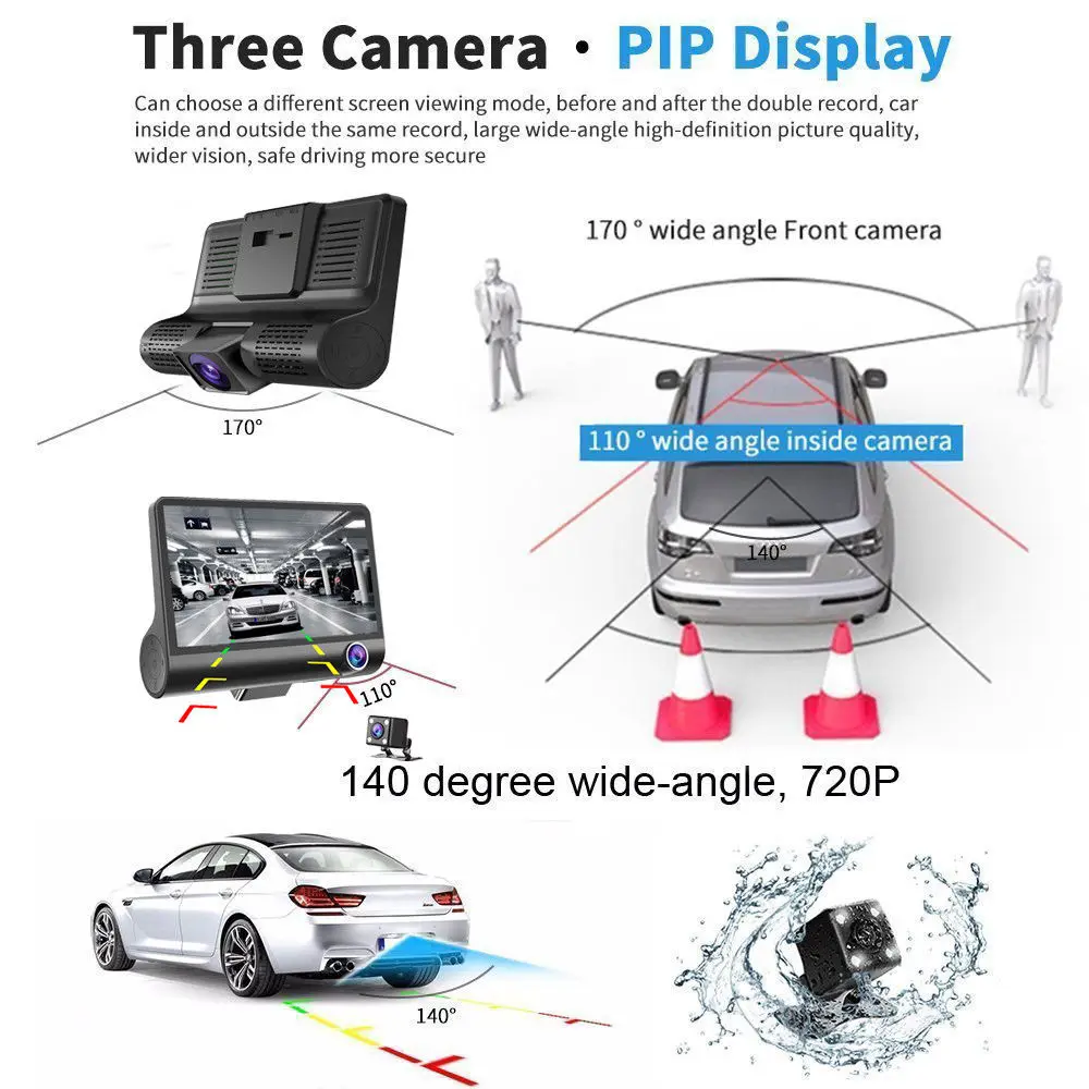 Podofo Автомобильная камера 4 ''трёхполосный видео регистратор 170 градусов широкоугольный видеорегистратор g-сенсор Dashcam для автомобиля DVR Cam