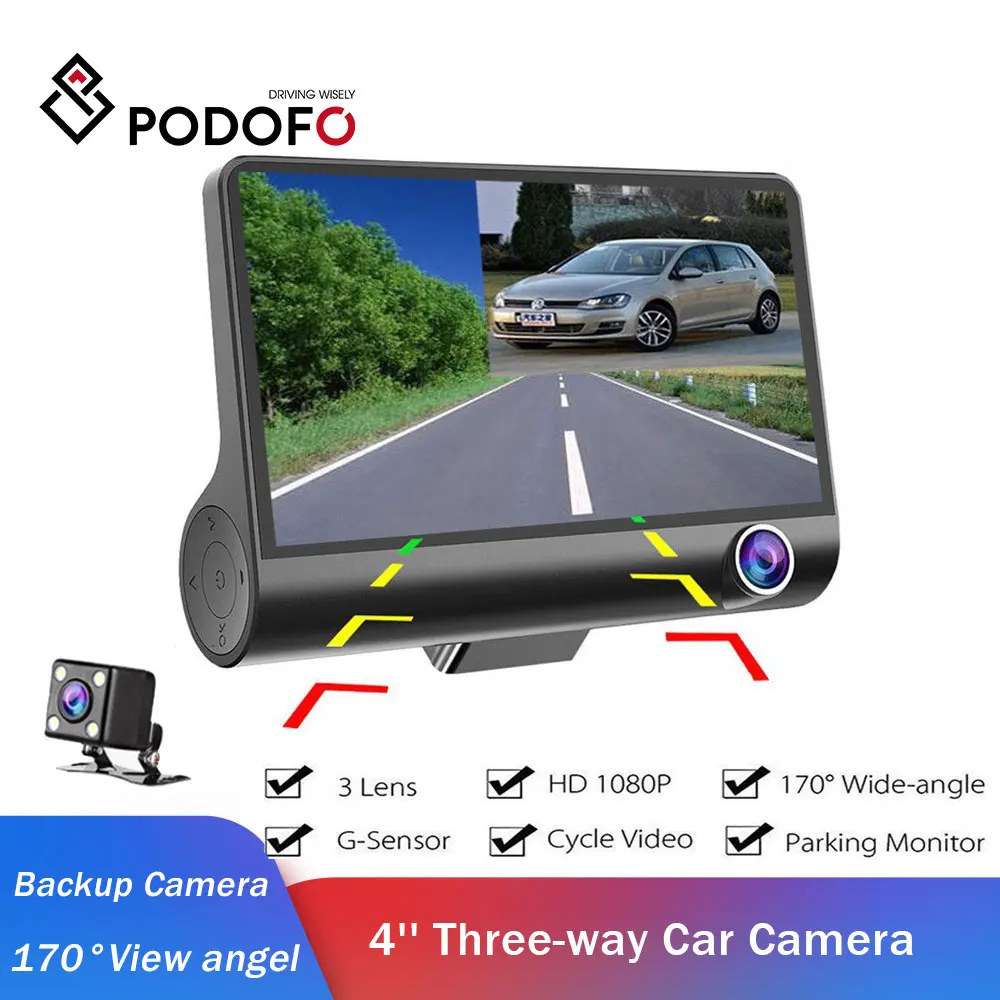 Podofo 4 ''трехполосная Автомобильная камера FullHD 1080P видео регистратор 170 градусов широкоугольный видеорегистратор g-сенсор Dashcam