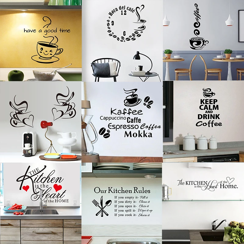 Декоративные виниловые наклейки на стену, наклейки на стену кофе, 28 стилей, для кухни, сделай сам, домашний декор, столовая, магазин, бар