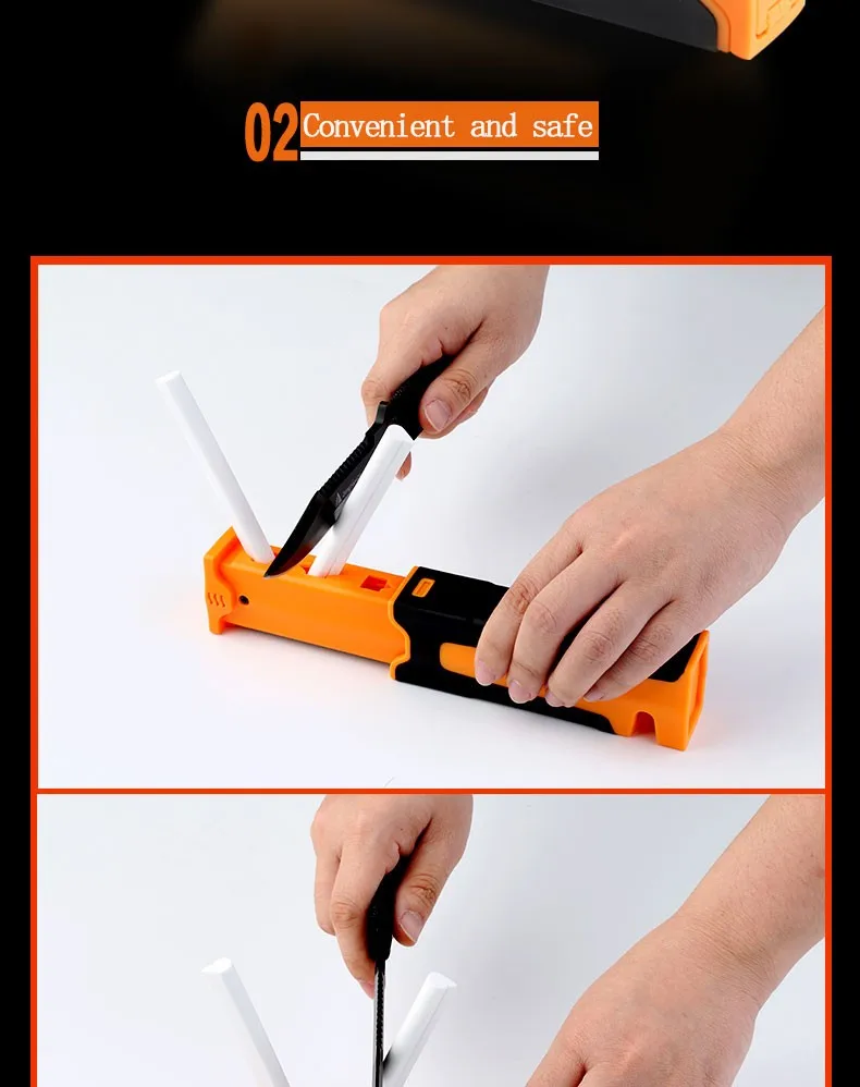 2. Пожалуйста, поставьте точилку ножа и нож в недоступном для детей месте, чтобы избежать каких-либо несчастных случаев.