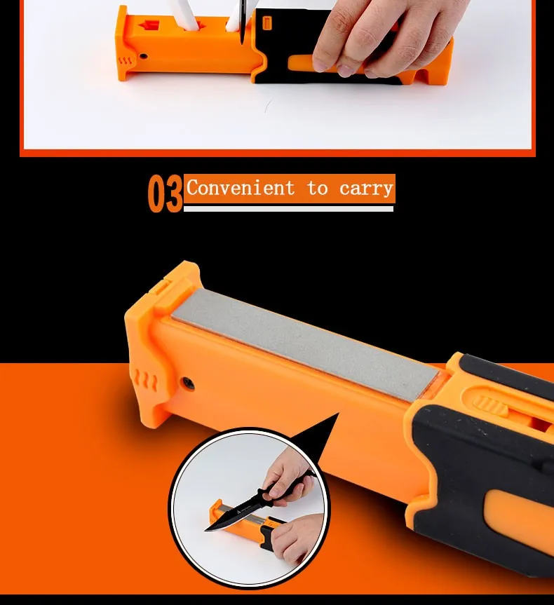 Вытяните часть алмазной заточки, удерживайте ручку, поместите лезвие на конец камня под нужным углом заточки.