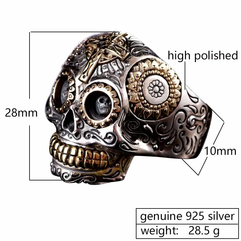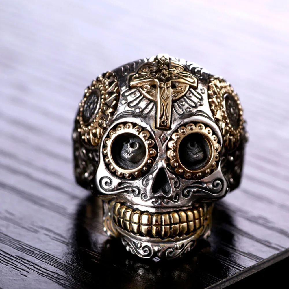Мужское кольцо с черепом из серебра 925 пробы, в стиле панк-рок