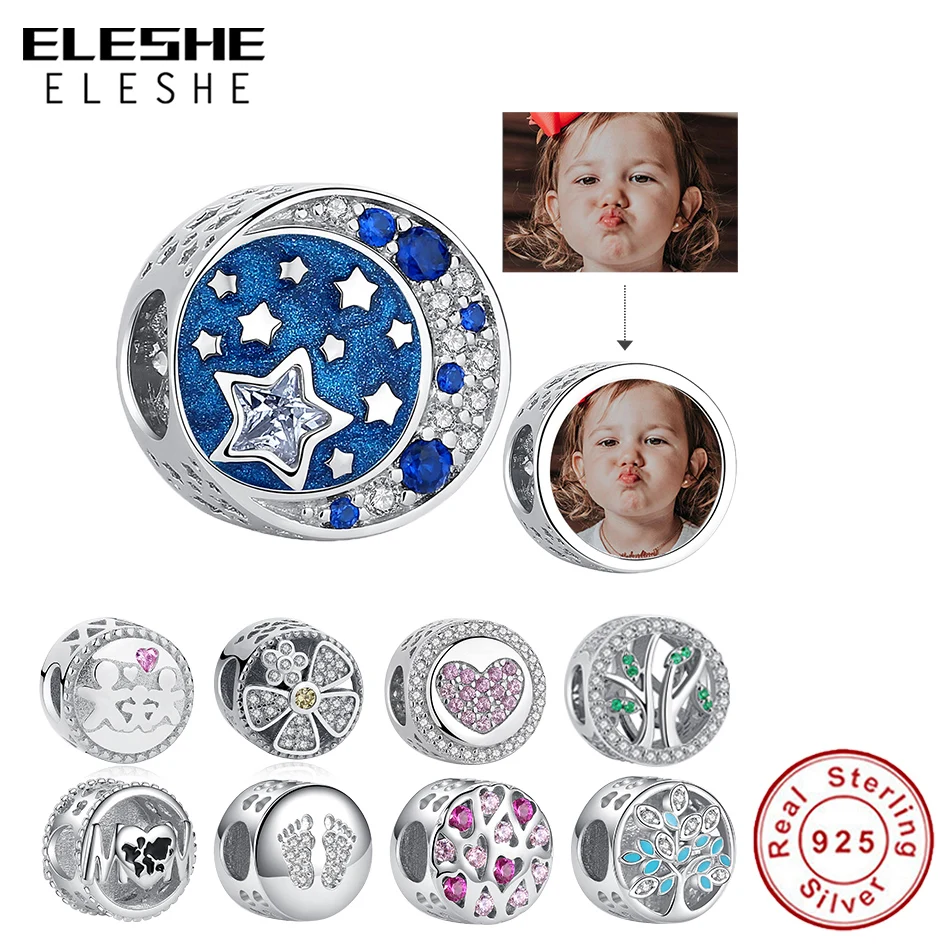 ELESHE 925 шарма стерлингового серебра на заказ фото хрустальные бусины подходят оригинальный браслет DIY аксессуары для женщин ювелирные изделия