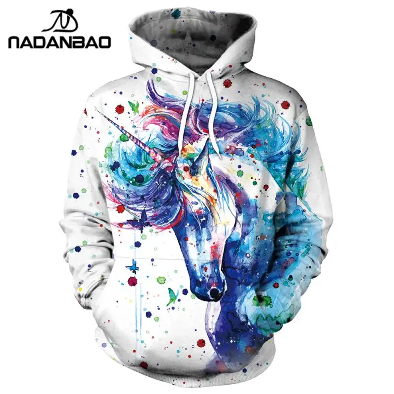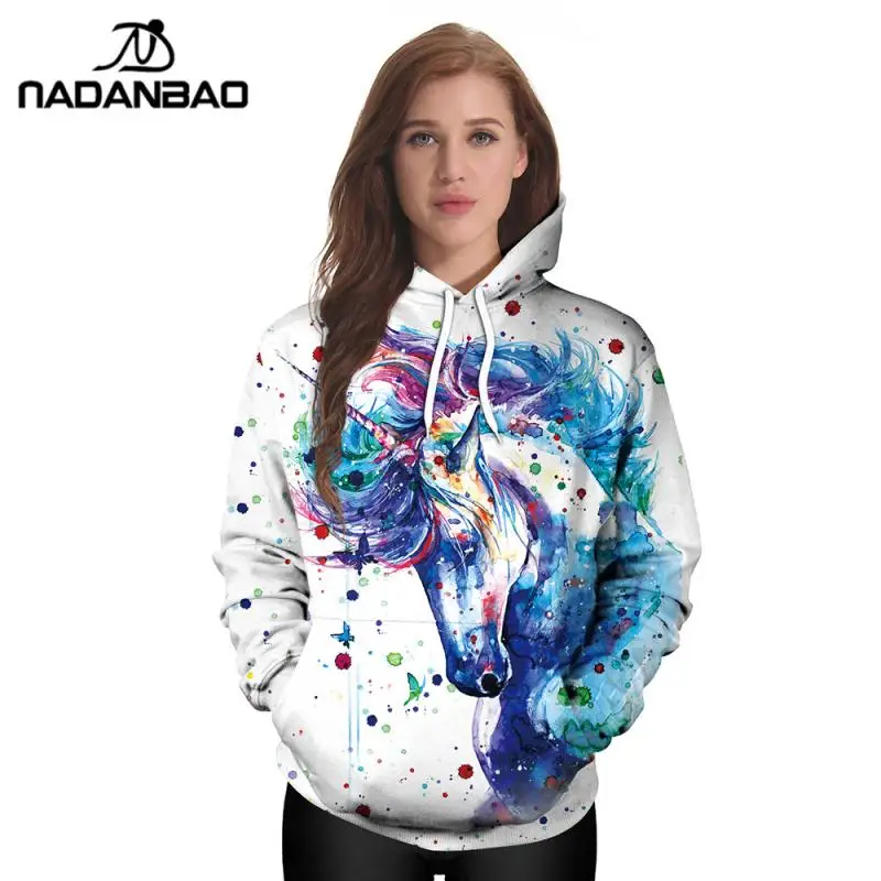 Бренд NADANBAO, зимний Женский свитшот, толстовки с 3D рисунком единорога, пуловеры, красочные чернила, брызги, толстовки с капюшоном, свитшоты