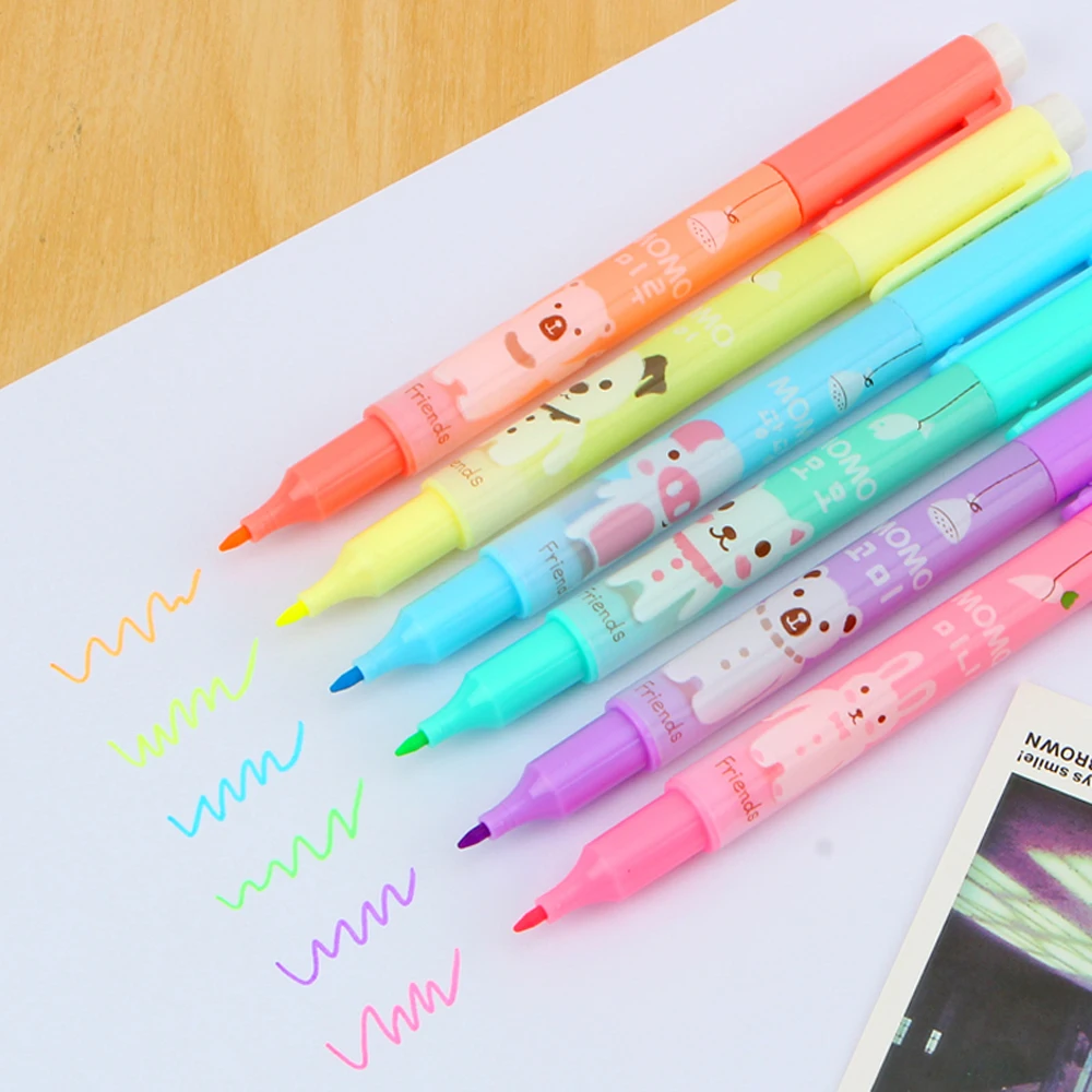 6 шт.лот, новинка, креативный мультяшный милый маркер-маркер для стад, канцелярские принадлежности для офиса и школы, подарок для малышей, цветные канцелярские принадлежности