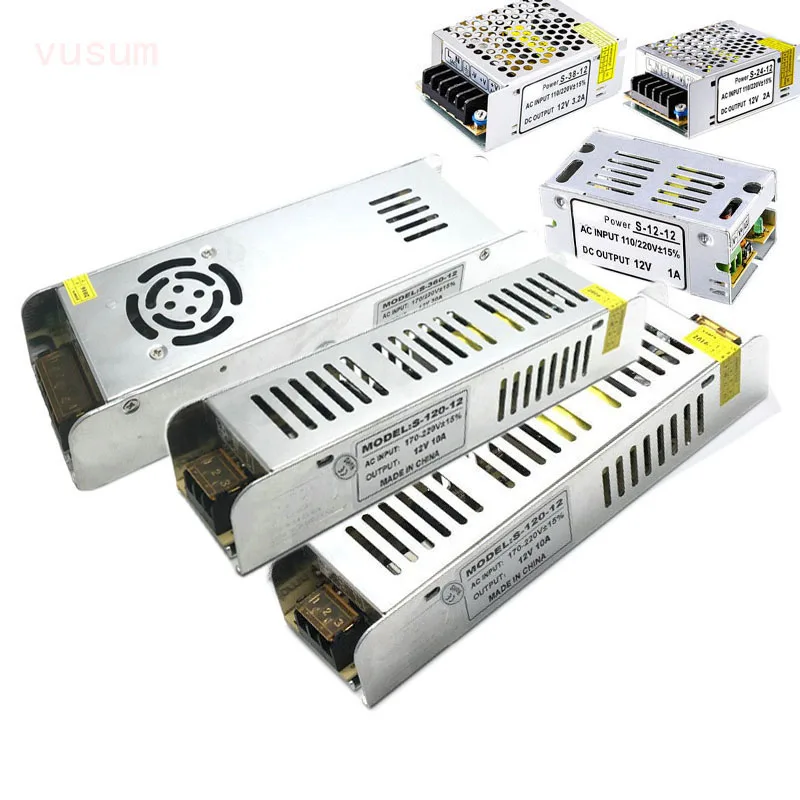 Светодиодный драйвер Vusum, источник питания, адаптер для освещения, 220 В переменного тока в 12 В24 В постоянного тока, 12 Вт, 24 Вт, 60 Вт, 120 Вт, 200 Вт, 250 Вт, 360 Вт