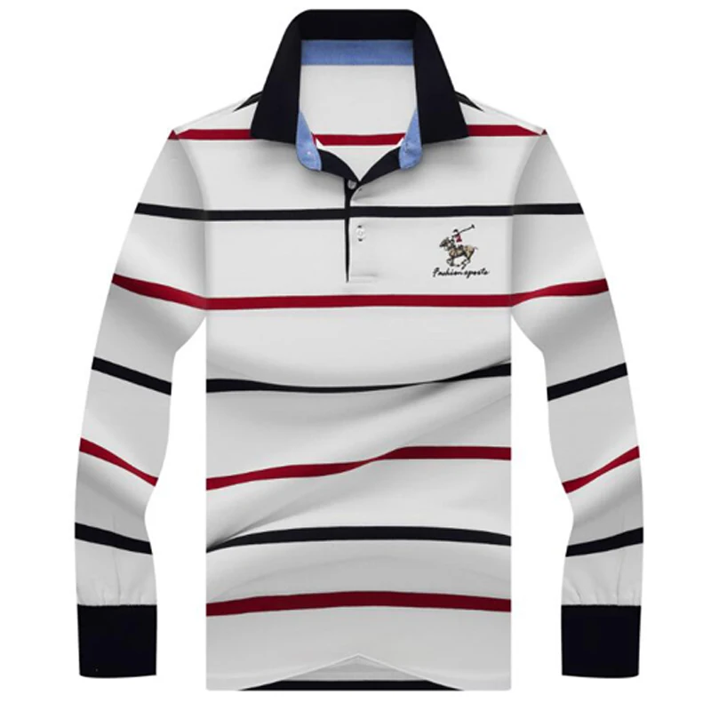 Мужская рубашка-поло с длинным рукавом, в полоску