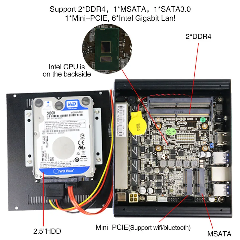 5. 1 * MSATA, 1 * SATA3.0, 1 * mini-PCIE (поддержкаWi-Fi/bluetooth);