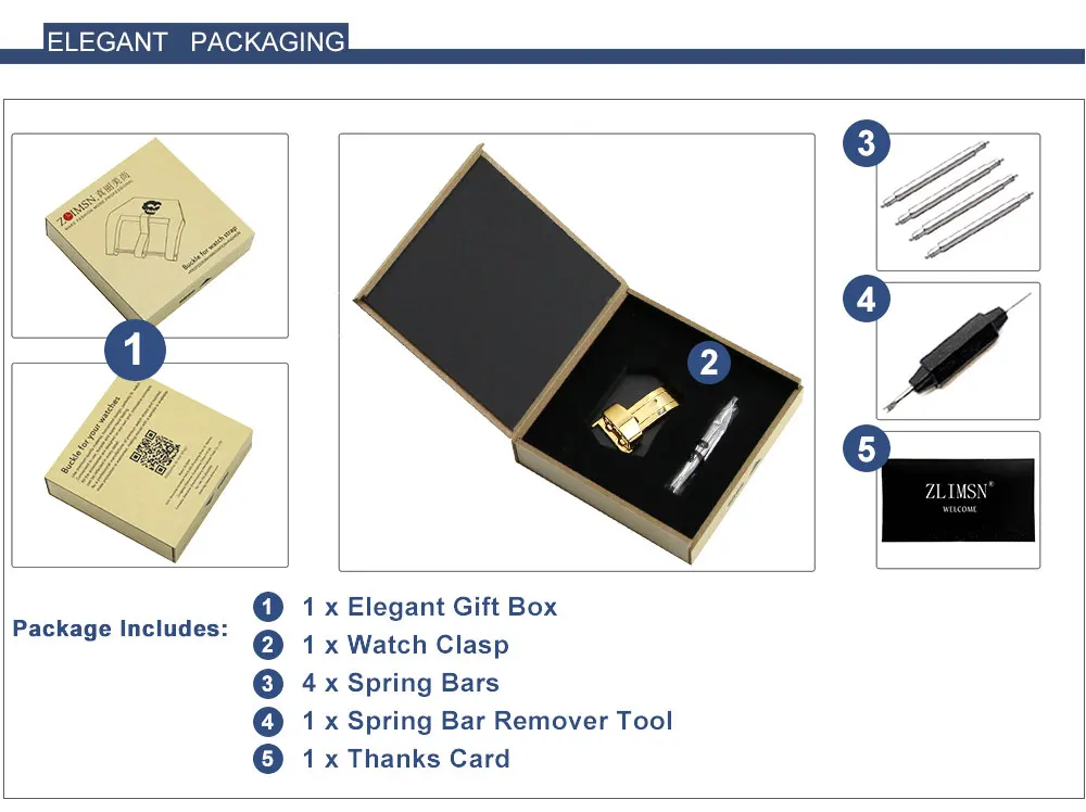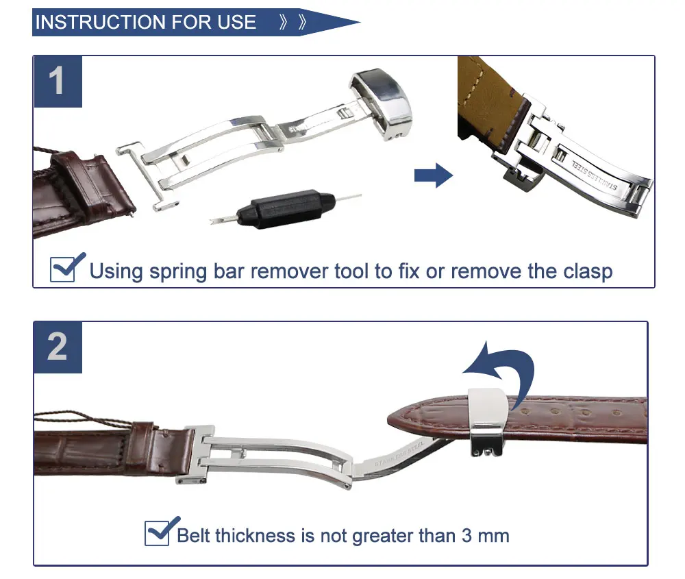 ZLIMSN 16 18 20 22 мм Одиночная Складная пряжка-бабочка из нержавеющей стали Полированная кожа Ремешки часы аксессуары Серебристый