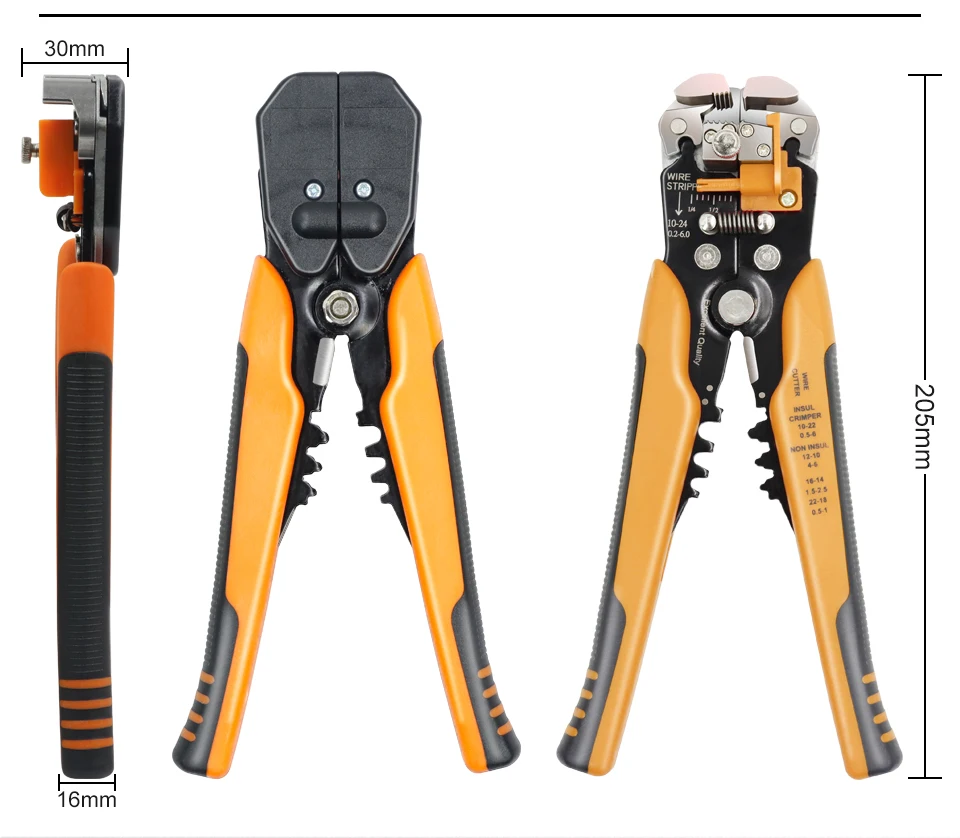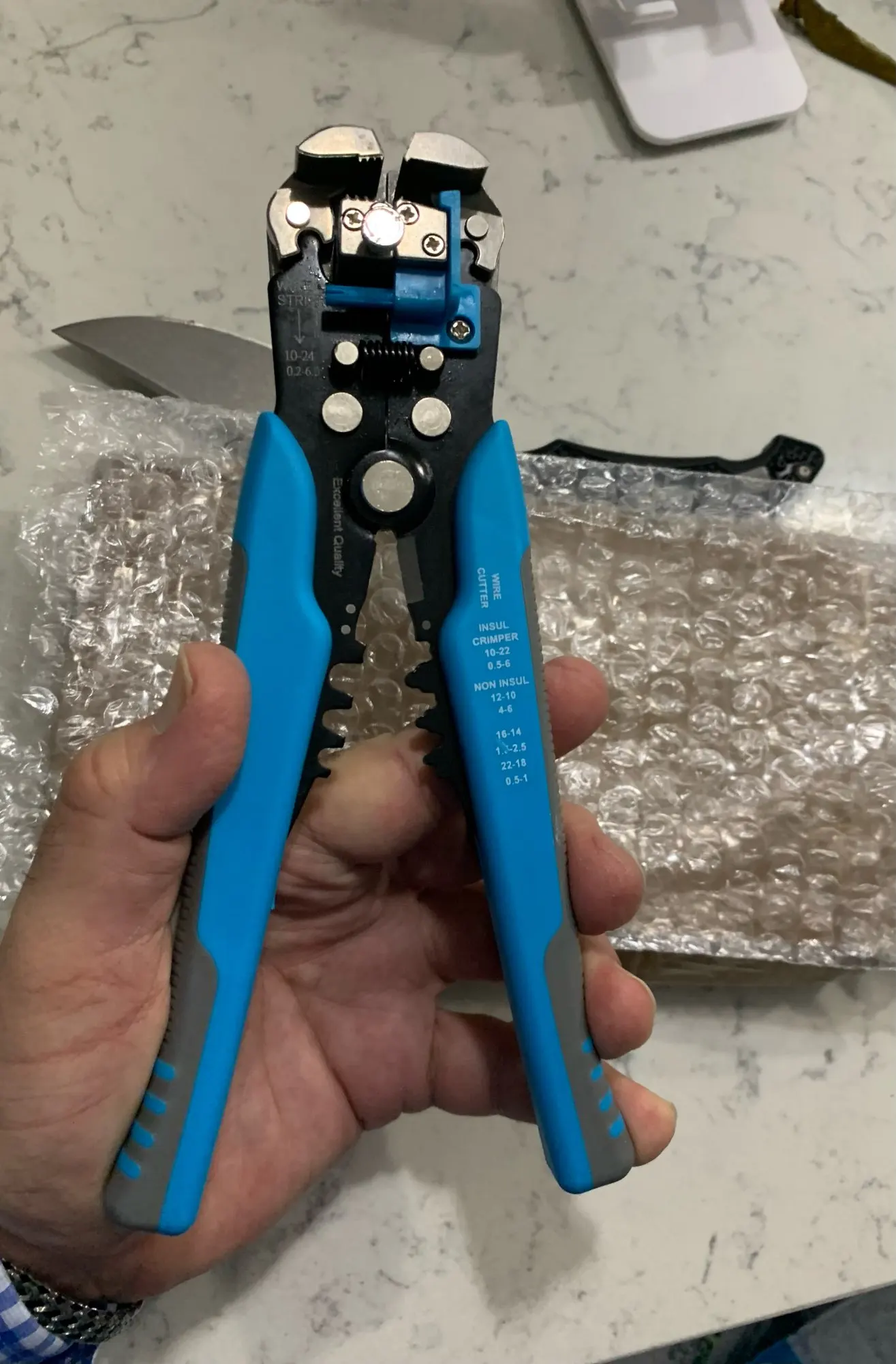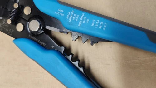 Хороший универсальный стриппер. Усилие прижима регулируется, как и упор для зачищаемого конца. Единственное, есть несколько мм хода с малым прижимом, поэтому нужно брать запас длины зачищаемого в большую сторону. Наилучшая очистка от изоляции при более резком сжатии ручек. Хорошо исполнено по качеству. Тыльная сторона с декоративними накладками, механизм смазан. Дополнительный функционал больше для вида - неизолированный ножевой кое-как обжал со второй попытки. Резак с одним лезвием работает, проверил на сечениях 0,35...2,5 мм2. Достаточно быстрая доставка, рекомендую!