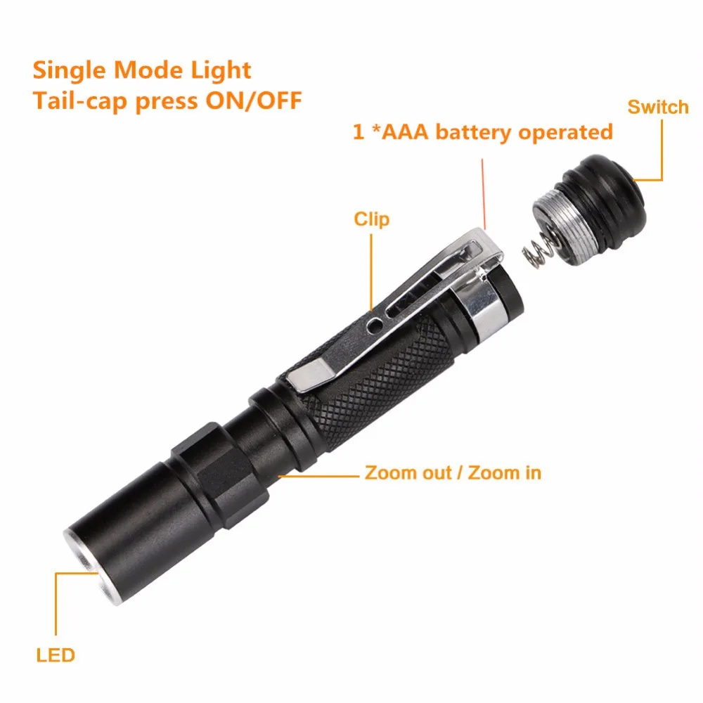 Портативный мини ручка светильник Q5 2000LM светодиодная вспышка светильник Фонарь карманный светильник Водонепроницаемый фонарь ААА Батарея мощный светодиодный фонарик для охоты