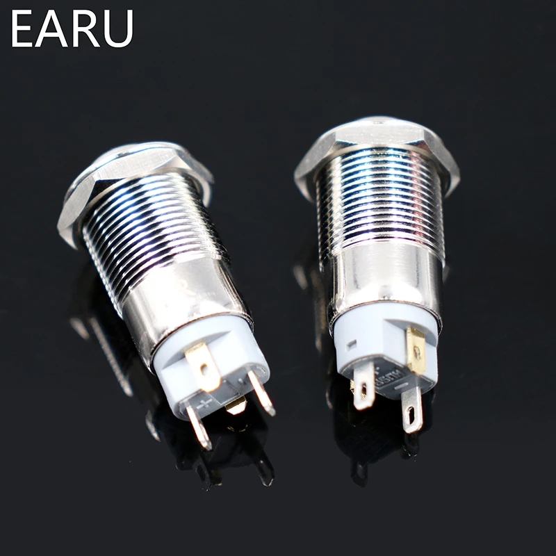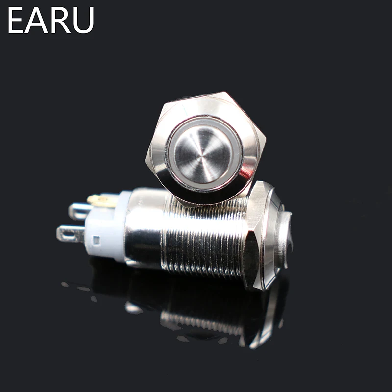 Яркий круглый металлический кнопочный выключатель из нержавеющей стали, яркий автомобильный сигнал, автоматическая блокировка, 1 шт., 12 мм