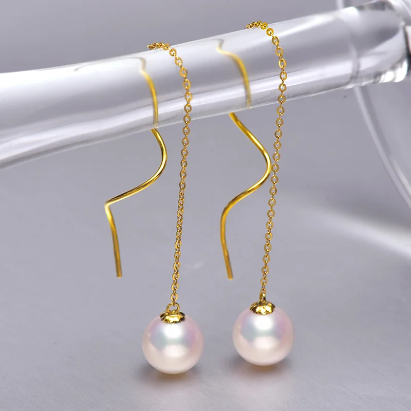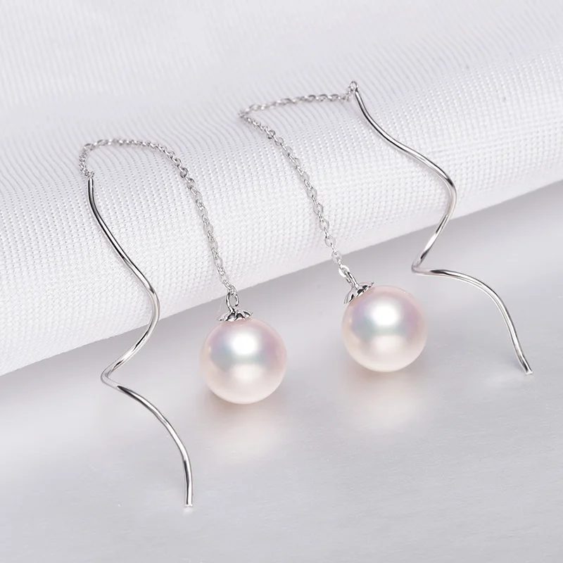 Серьги-подвески с жемчугом акойя, 7-7,5 мм