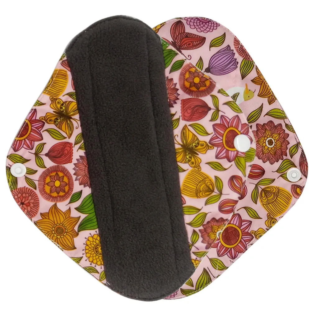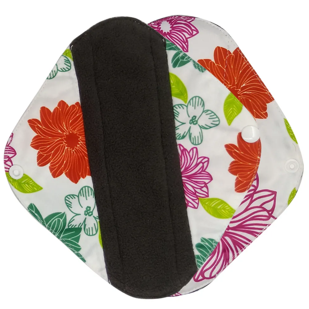 Носите очень мягкий бамбуковый уголь (черный цвет) слой рядом с вашей кожей, в то время как печатная сторона подкладки касается нижнего белья. Просто поместите подкладку в нижнее белье и закрепите закрылки вместе с защелкой.