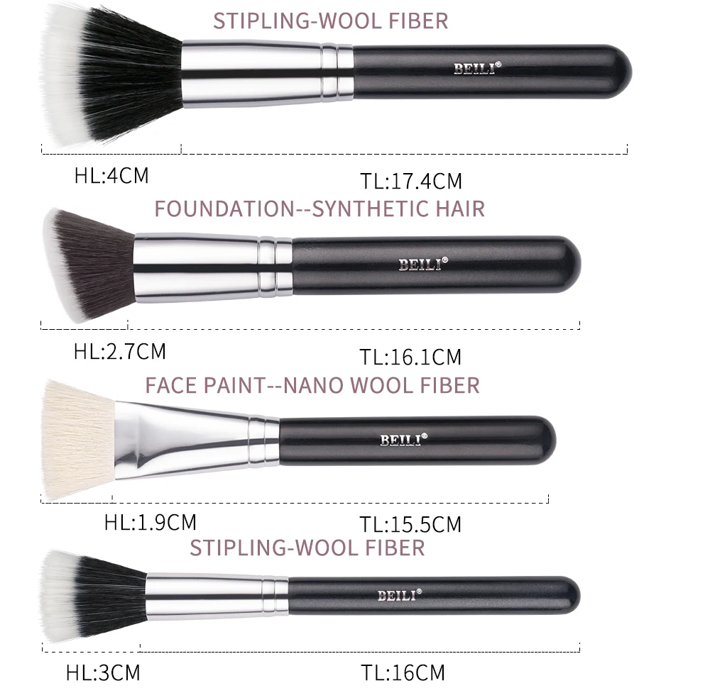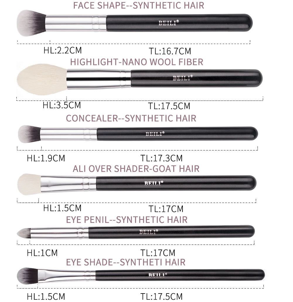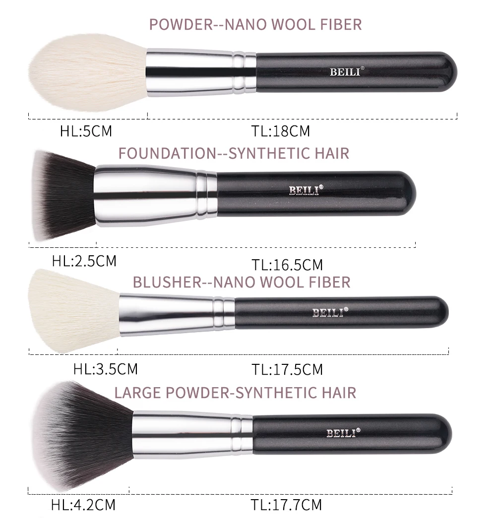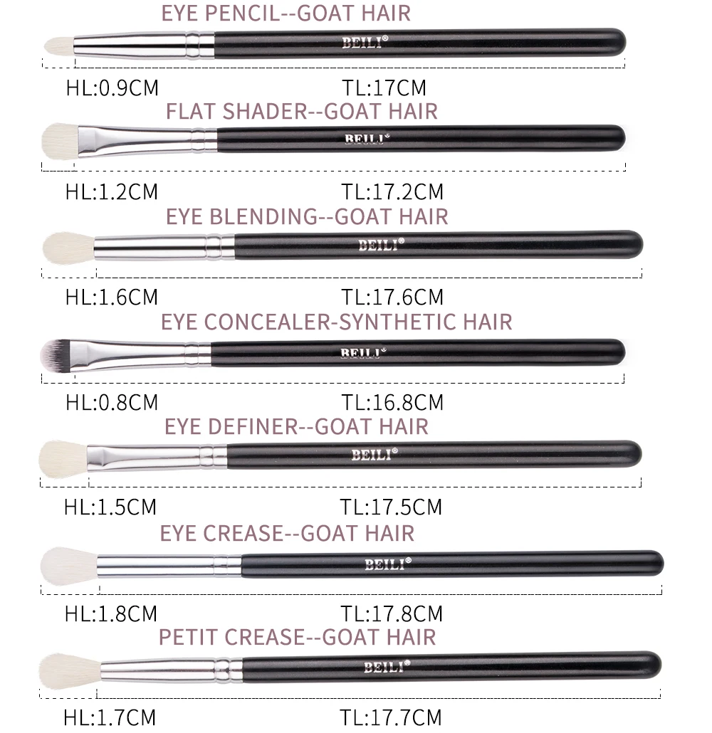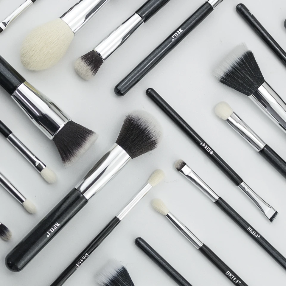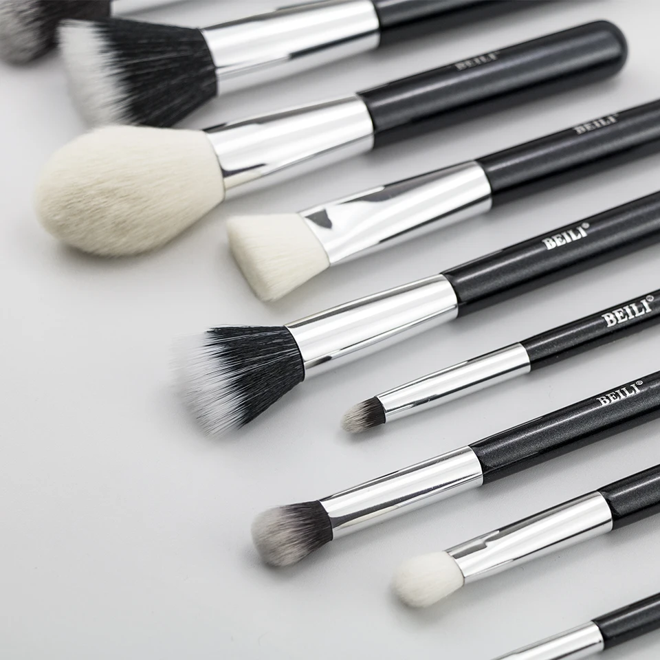 Набор черных кистей BEILI из козы, Профессиональные кисти для макияжа, для тона, консилера, теней, кисточки для растушевки
