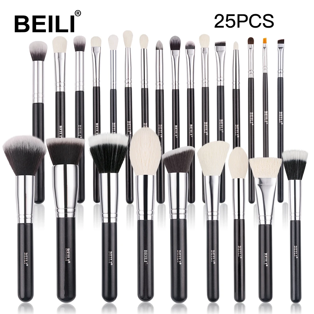 * Набор классических черных кистей для макияжа BEILI, предоставляет полный набор кистей, включая 25 кистей разных нормальных размеров, этот набор из 25 штук незаменим для ежедневного макияжа, идеально подходит для любого любителя макияжа/MUA/визажиста