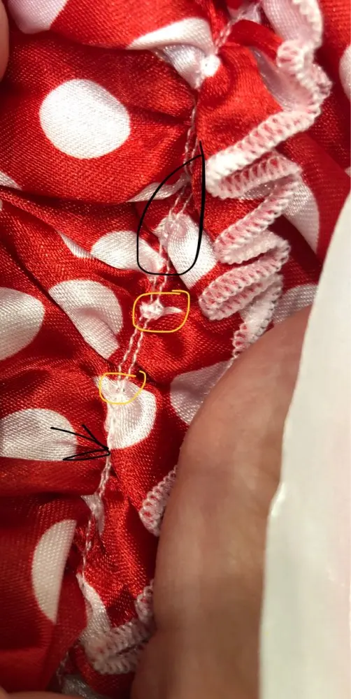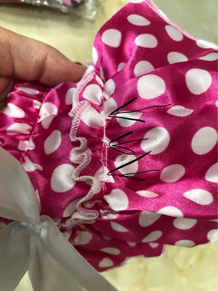 Доставка 3 недели в Россию.Качество трусиков в характеристиках:указано cotton (хлопок),а доставили ткань плохого качества синтетику,тонкую,на фото видно что даже от шва строчки дырочки.Швы строчки прошиты не ровно.В швах не совпадение.(на фото видно).