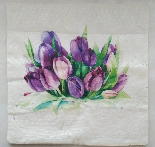 Чехол на подушку с акварельными цветами, льняной Чехол на подушку с чернилами, геранью, васильками, букетами и цветами