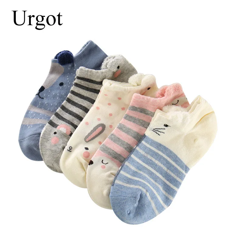 5 пар, женские носки до щиколотки, милые, простые, с мультяшными стереоскопическими ушками, плюшевые носки, удобные, дышащие, Анти-усталость, для девочек, Meia