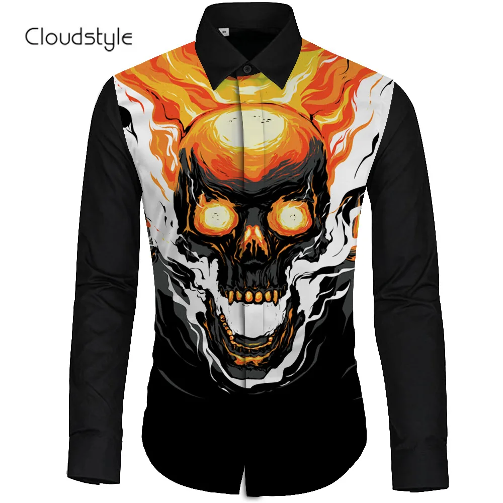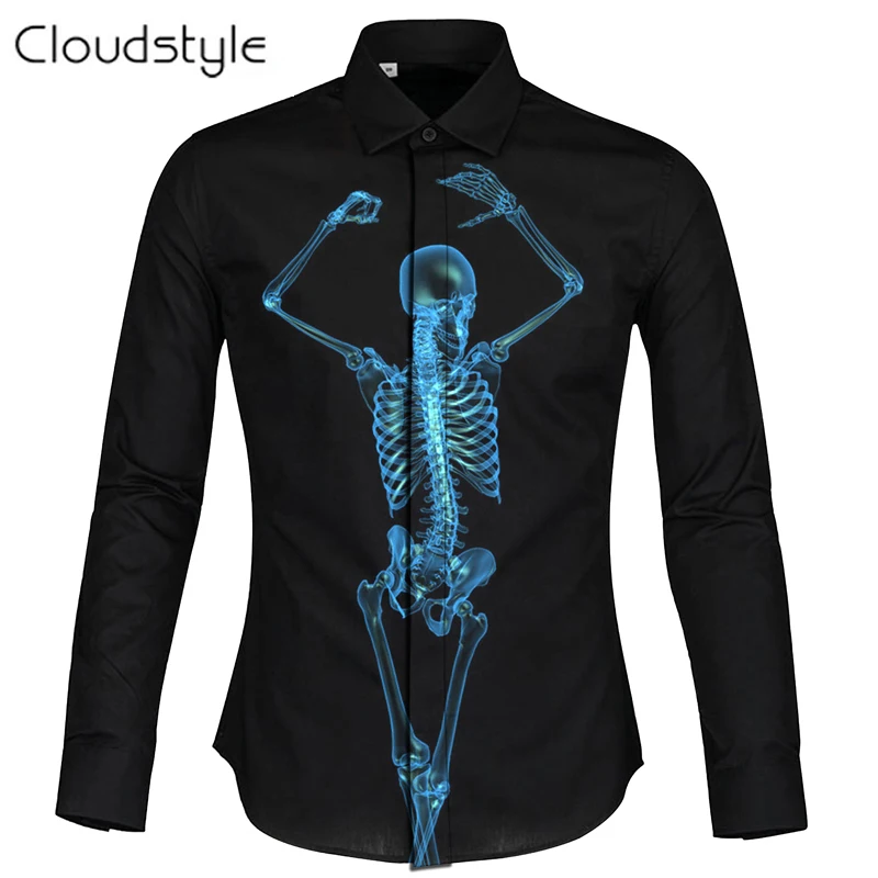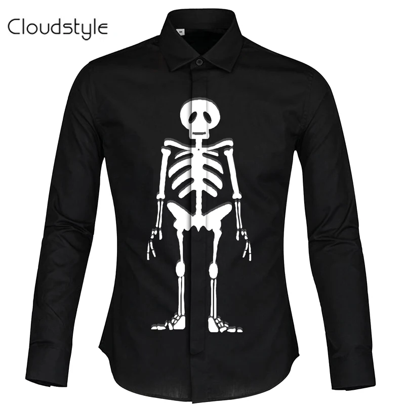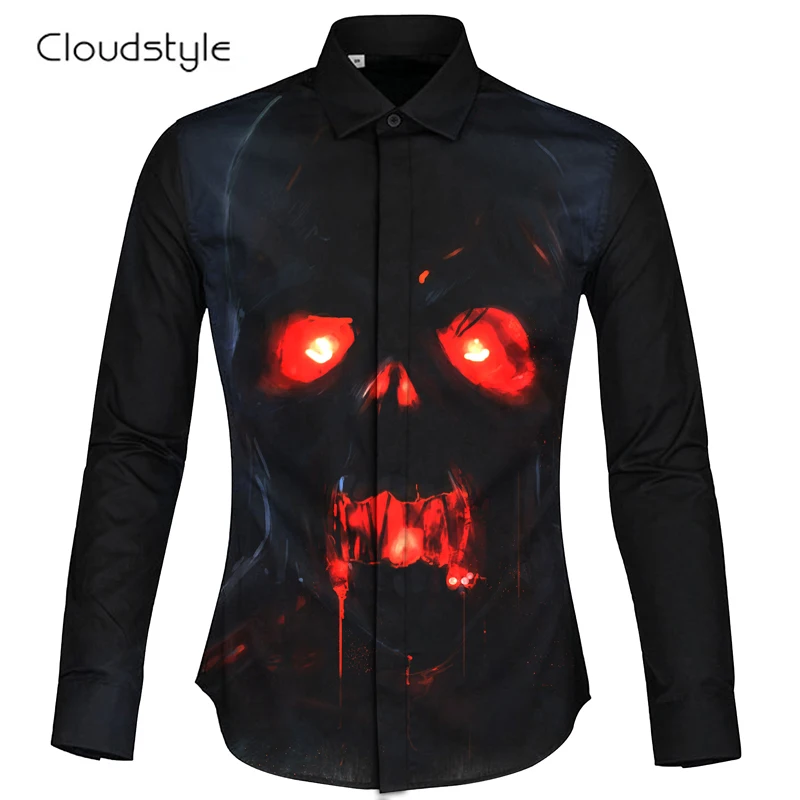 Cloudstyle 3d череп мужская рубашка с длинным рукавом мужская светская рубашка китайская рубашка модные черные белые мужские рубашки с длинным рукавом M-2XL