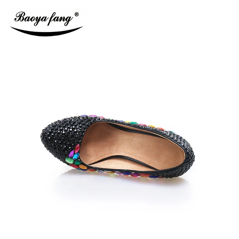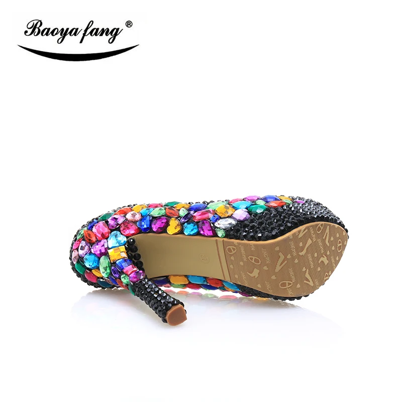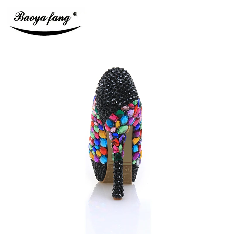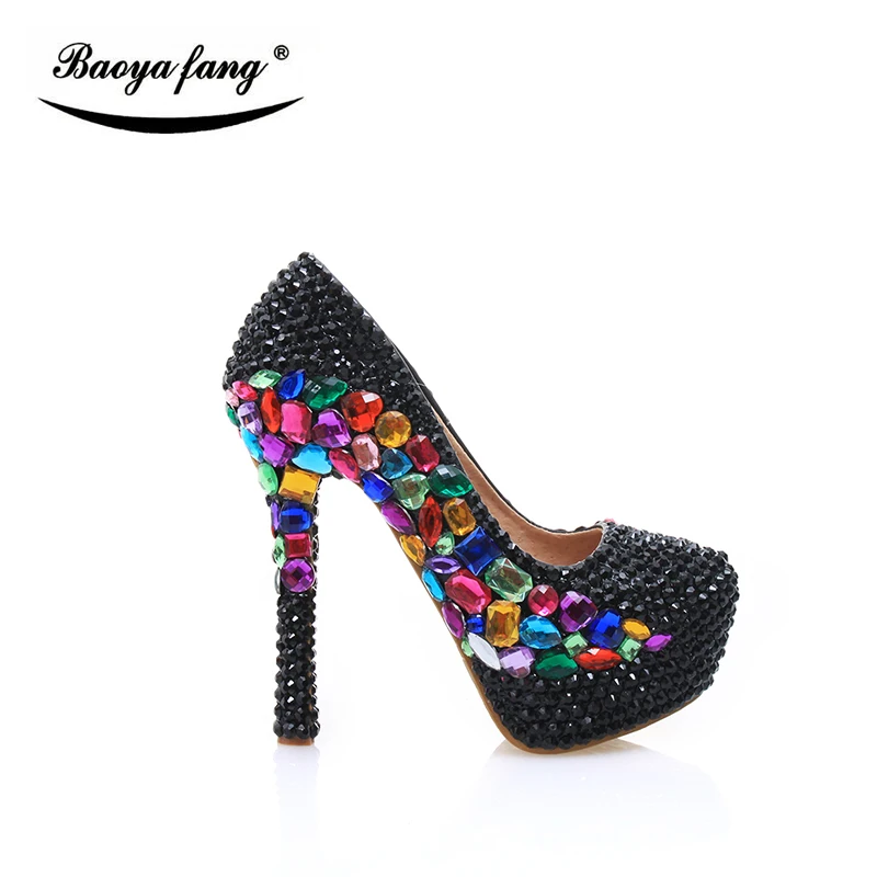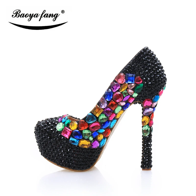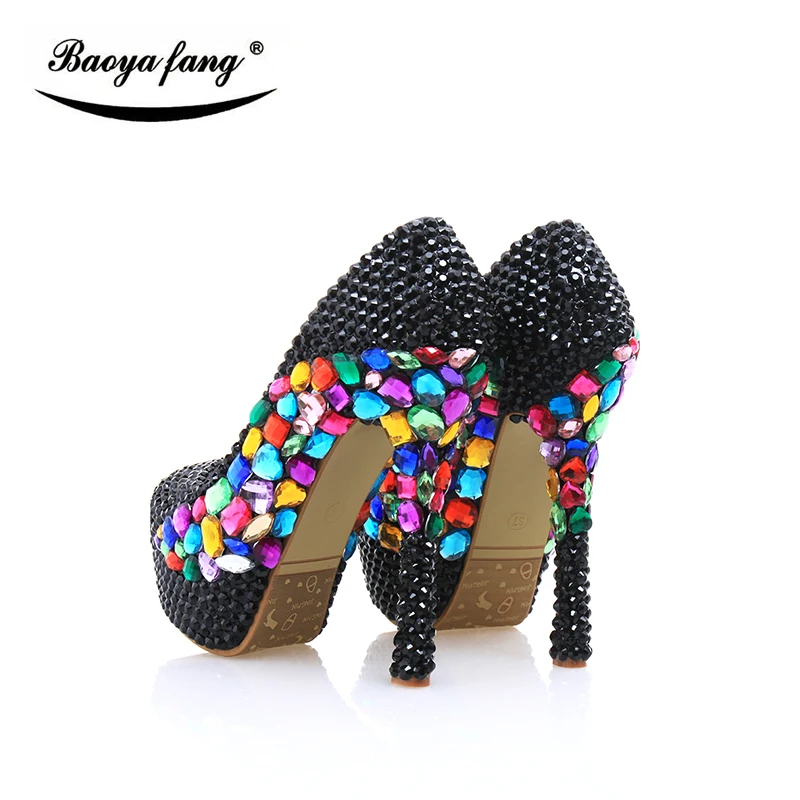 Роскошные черные свадебные туфли с маленькими кристаллами; Новинка 2017 года; Женская обувь; Вечерние туфли; Свадебная обувь на платформе; Большие разноцветные женские туфли на высоком каблуке