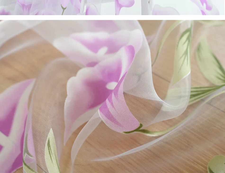 Занавеска из тюля с цветами для кухни, гостиной, спальни, балкона, двери, окна, прозрачная занавеска из вуали желтого и фиолетового цветов, утренняя слава
