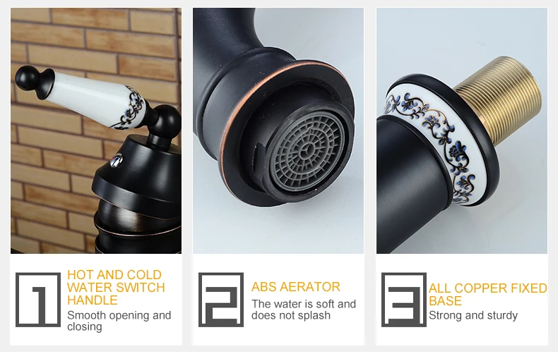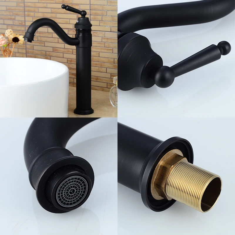 Смеситель для раковины в винтажном стиле, бронзовый, черный