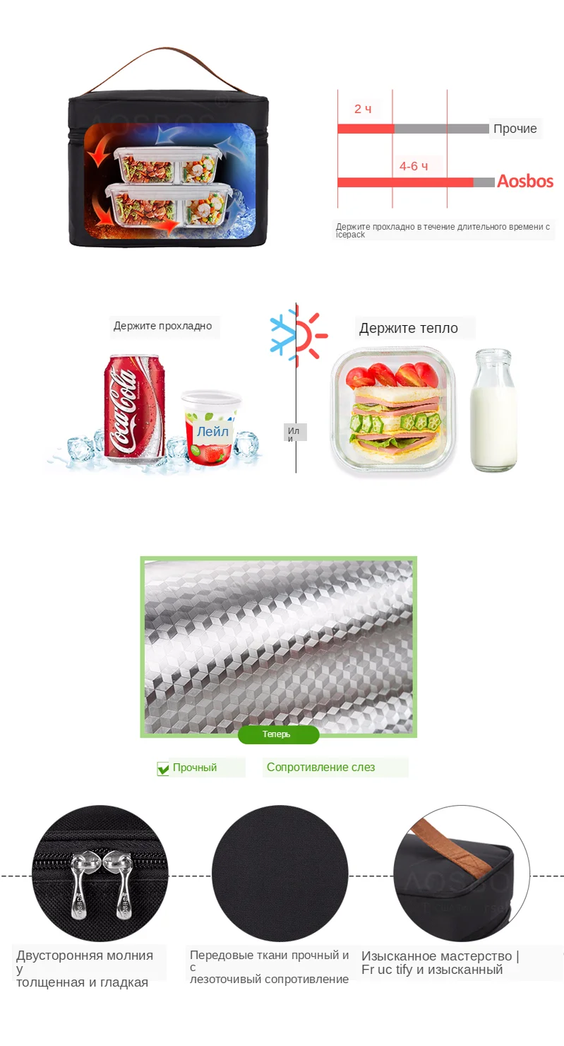 Aosbos портативные термальные сумки для обеда для женщин и детей, многофункциональные сумки для еды, пикника, холодильная коробка, изолированная сумка-тоут, контейнер для хранения