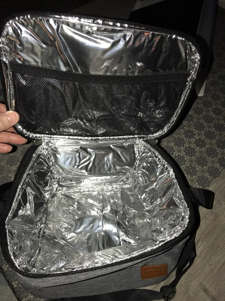Хорошая сумка для еды. Не слишком большой. Но не слишком маленький. Идеально подходит для работы. Я выбрал модель с ремешком. Это очень практично носить его на плече. Интерьер выглядит солидно. Короче говоря, мне очень нравится цвет и отделка. Не жалею об этой покупке.