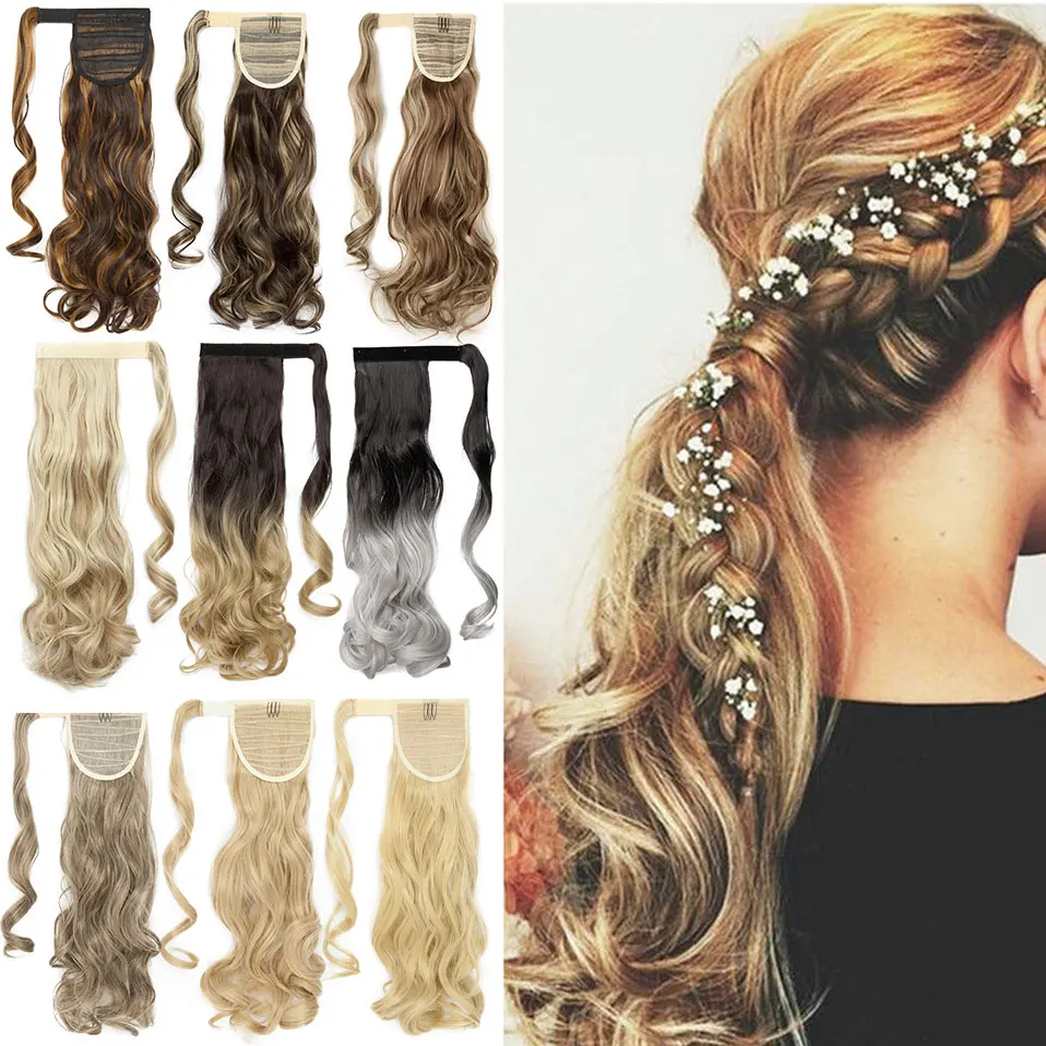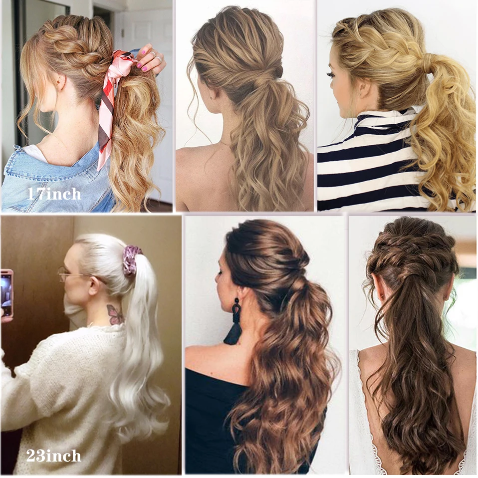 S-noilite 17 дюймов длинные волнистый шиньон конский хвост из натуральных волос клип в конский хвост шиньон Обёрточная бумага вокруг синтетический хвостик наращивание волос для Для женщин