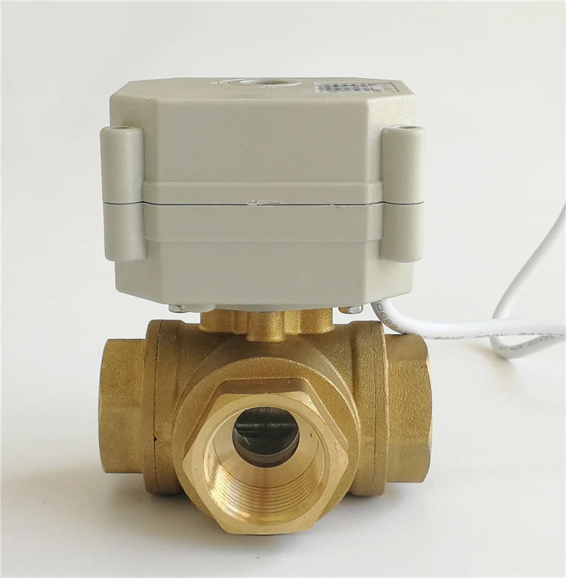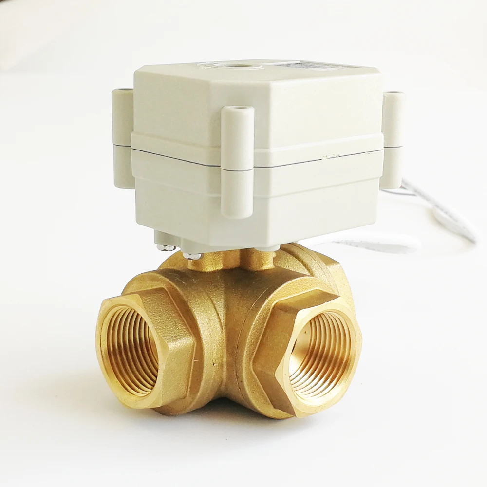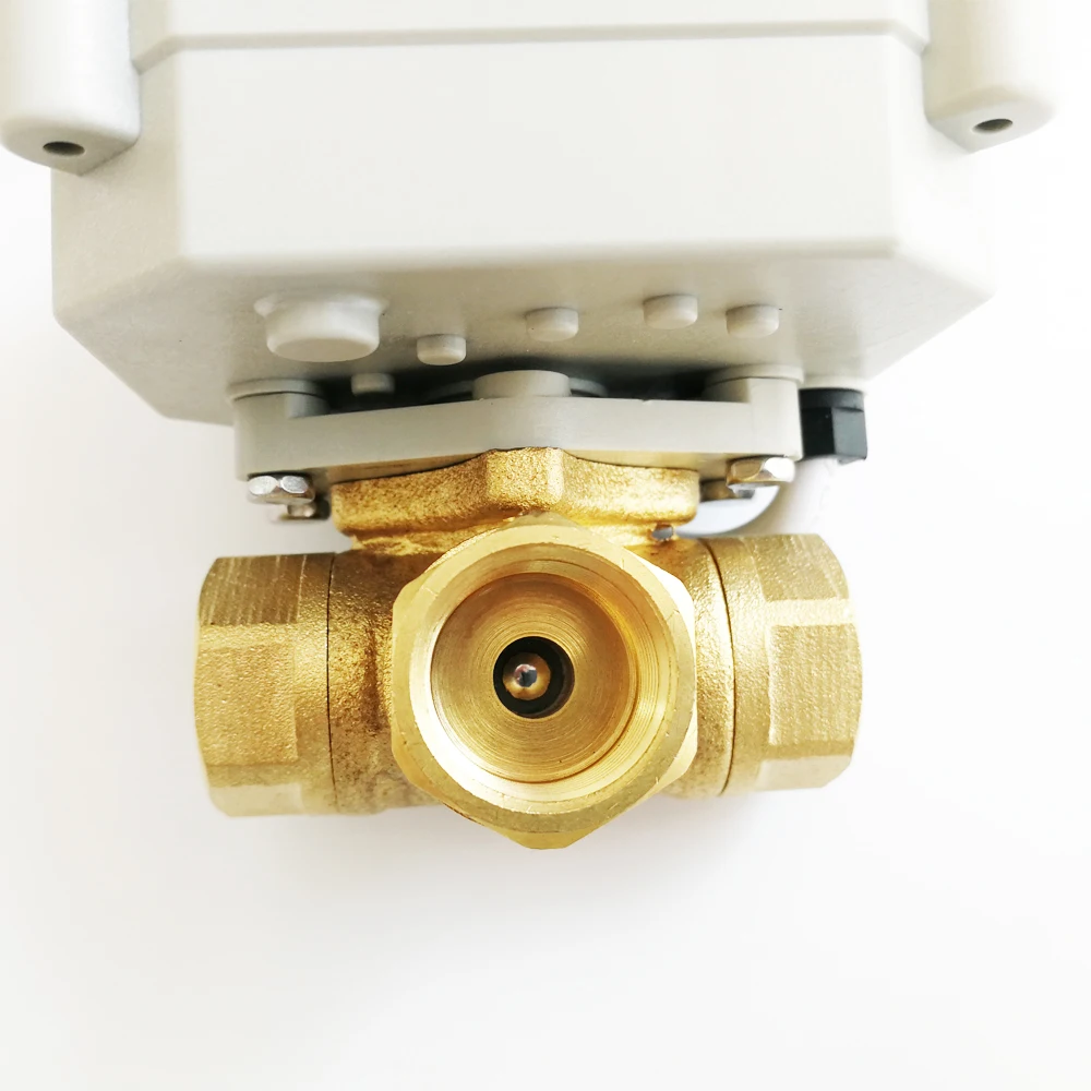3-ходовой шаровой кран с электроприводом горизонтального типа 34 дюйма, DN20, латунный Электрический шаровой кран, 24 В постоянного тока, 12 В постоянного тока, 5 в постоянного тока для автоматического управления водой