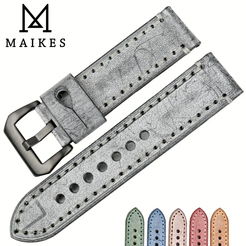 Ремешок MAIKES винтажный черный кожаный для наручных часов, аксессуары для часов, браслет для Panerai, 22 мм 24 мм