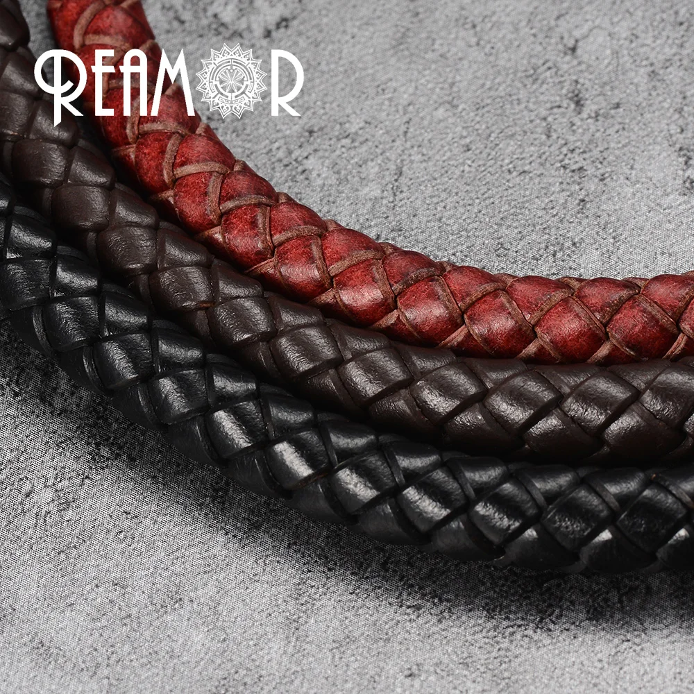 Веревочный шнур REAMOR из натуральной кожи, плетеный браслет 8 мм, ...