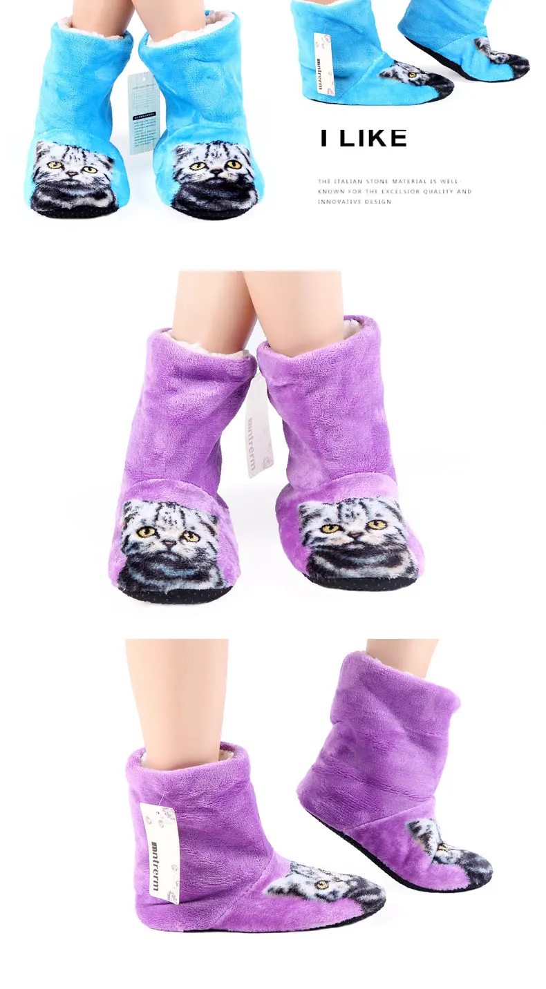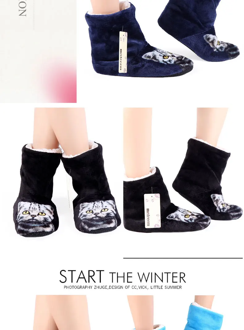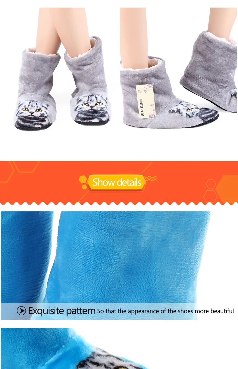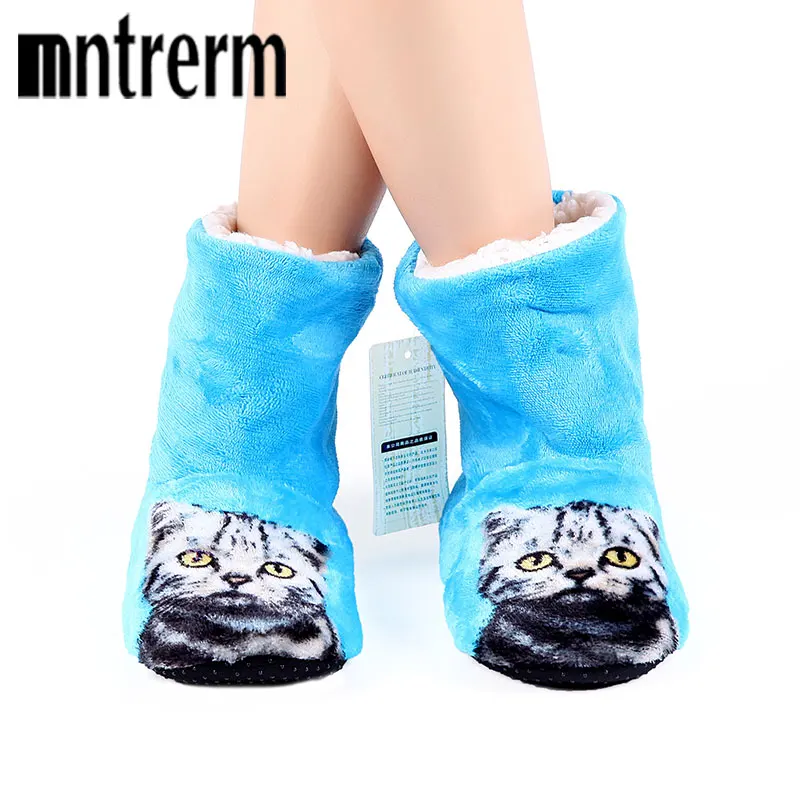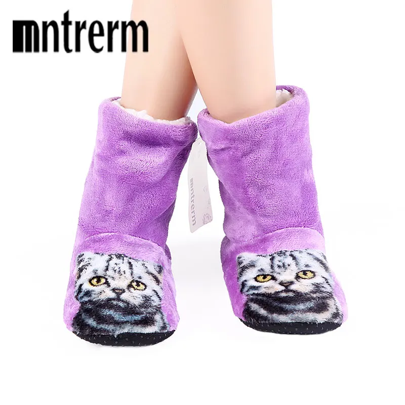 Женские пляжные тапочки Mntrerm, с милым 3d-рисунком кота, плотные, теплые тапочки на зиму, домашние, плюшевые, на плоской подошве