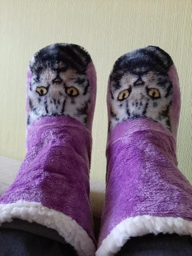 тапочки тонкие,размер вообще непонятно какой прислали(без опознавательных знаков),на 36 брала 38 и то маленькие,но больше всего расстроил рисунок -кошаки по размеру разные,смотрится поэтому не очень...