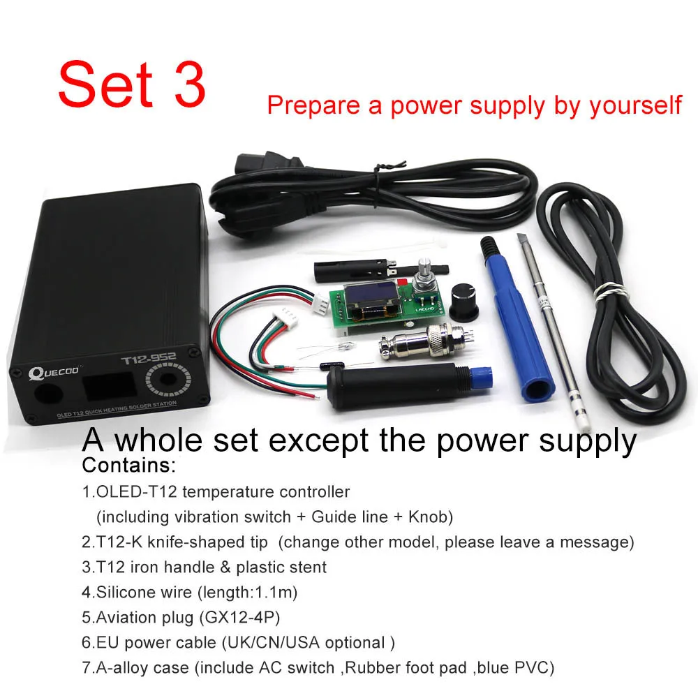QUICKO T12 STC-OLED пайки паяльная станция DIY частей комплекты T12-952 цифровой Температура контроллер паяльник с металлический корпус